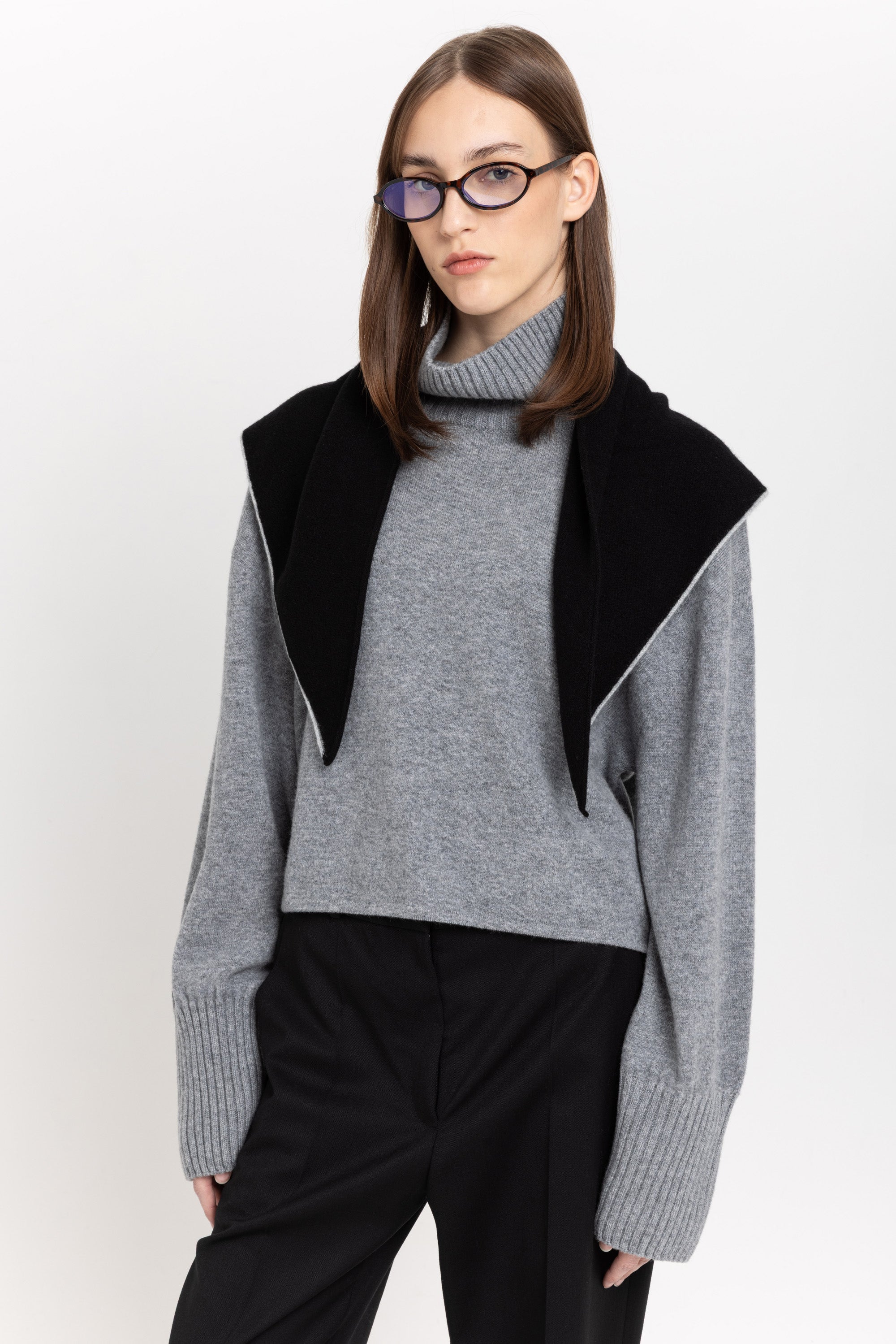 The K299 triangle scarf is a soft, elegant layer that adds warmth and texture to any look. Designed to pair effortlessly with our cashmere turtlenecks and pullovers for a refined sense of coziness.