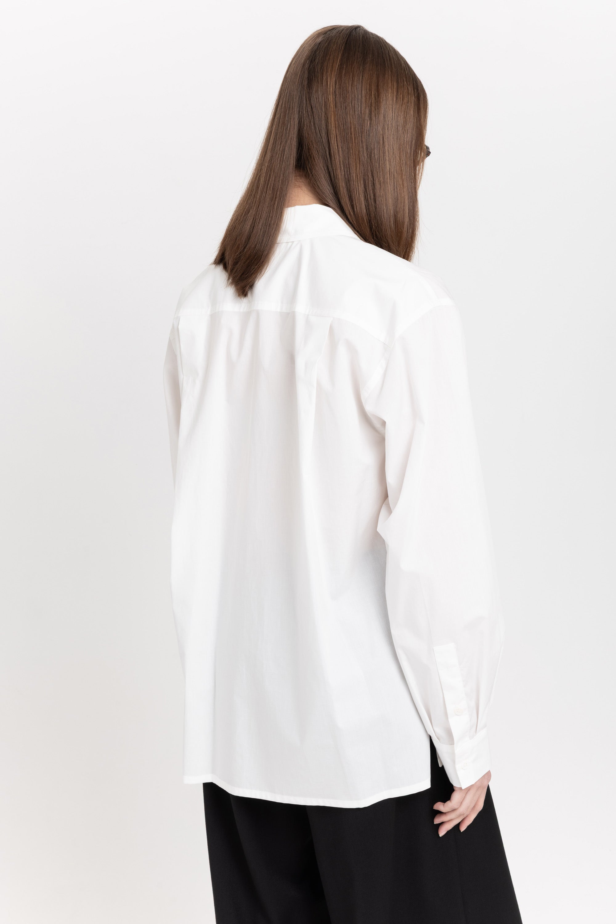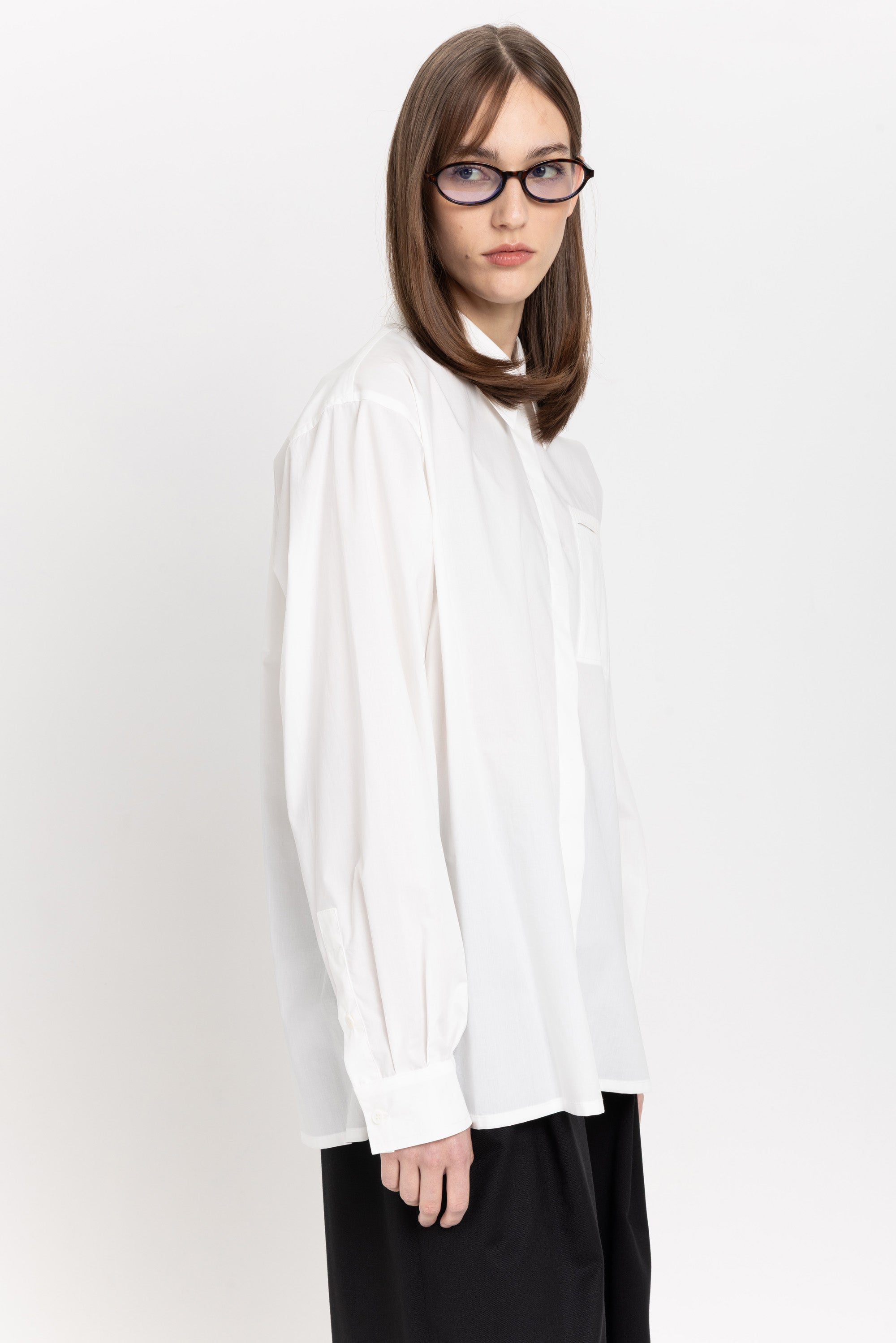 The BILLY 6 relaxed shirt in off white cotton poplin. Designed with a single chest pocket and soft tailoring, it balances structure and ease - a timeless piece with understated sophistication.