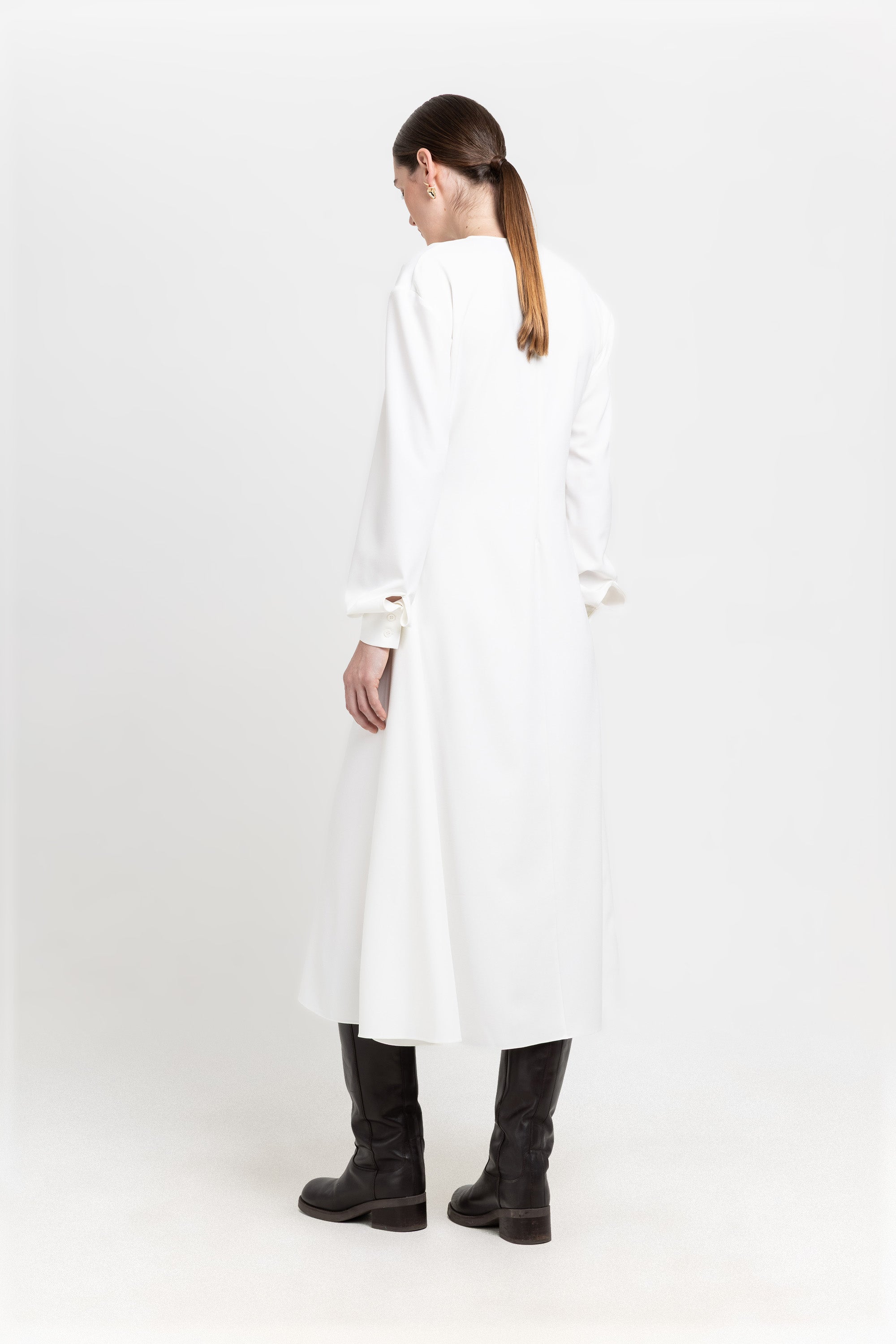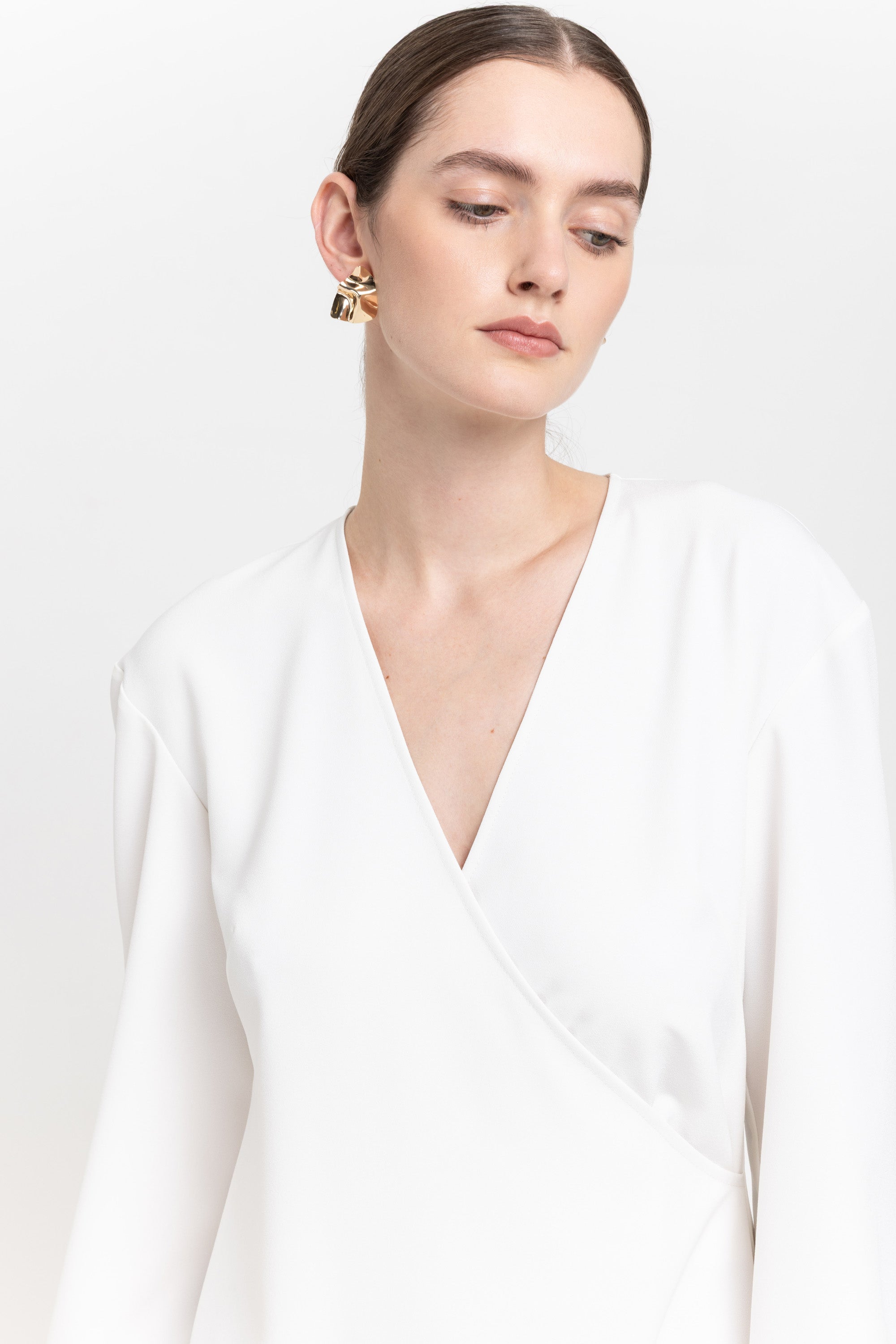 A long wrap dress in fluid satin viscose with a soft sheen. The DUNELI dress is designed with a V-neckline, long sleeves and side pockets for an elegant, relaxed silhouette.