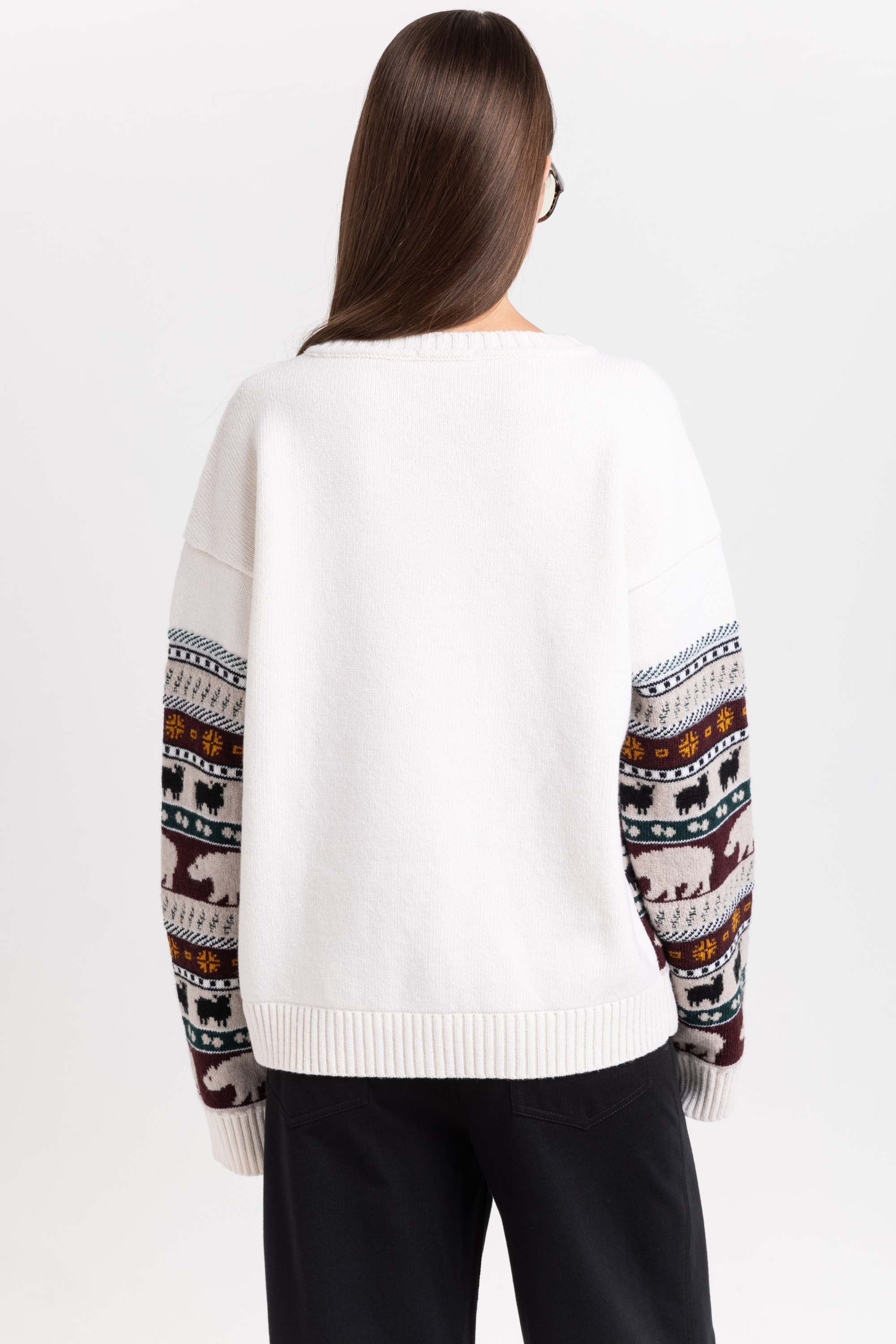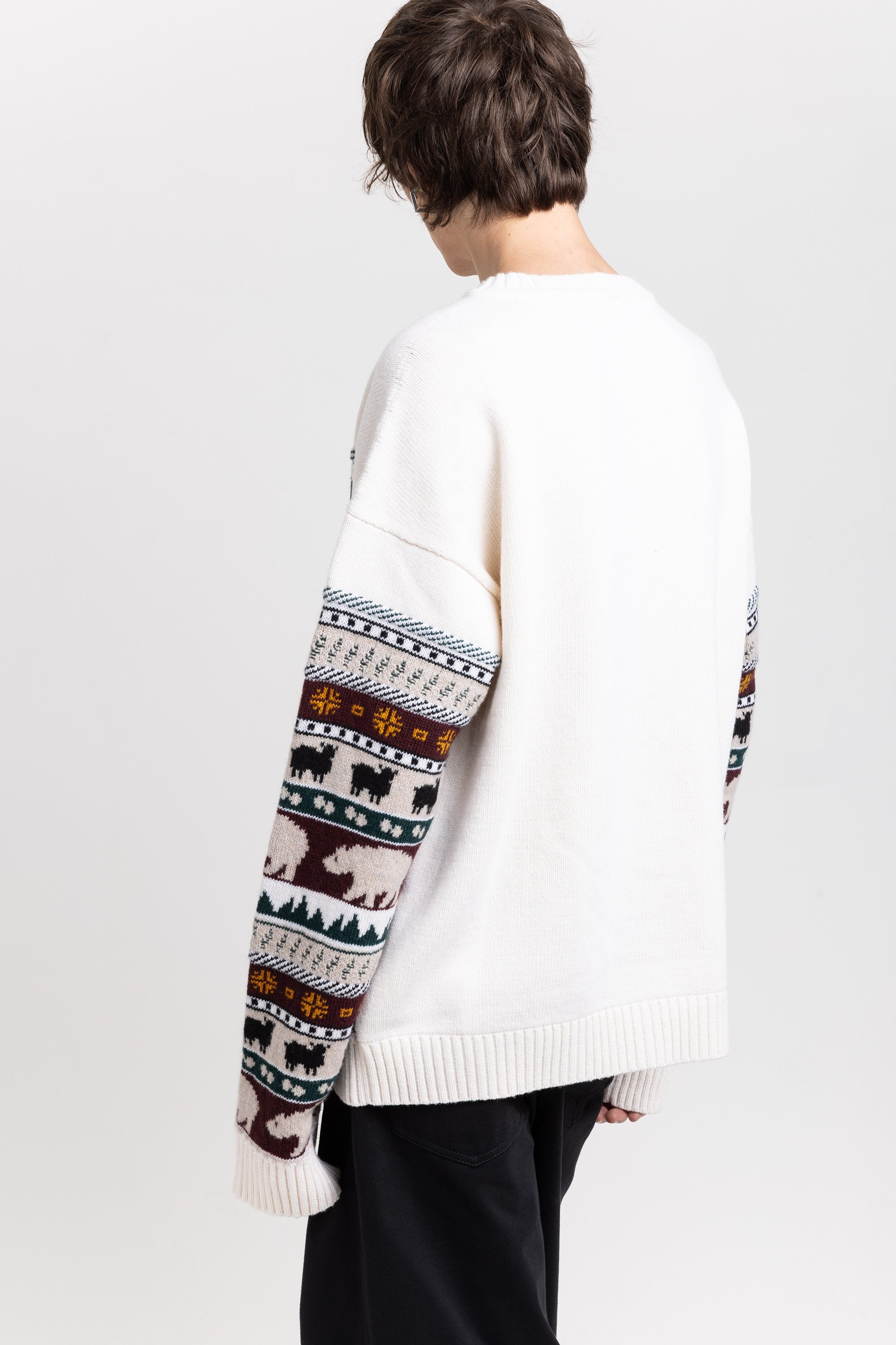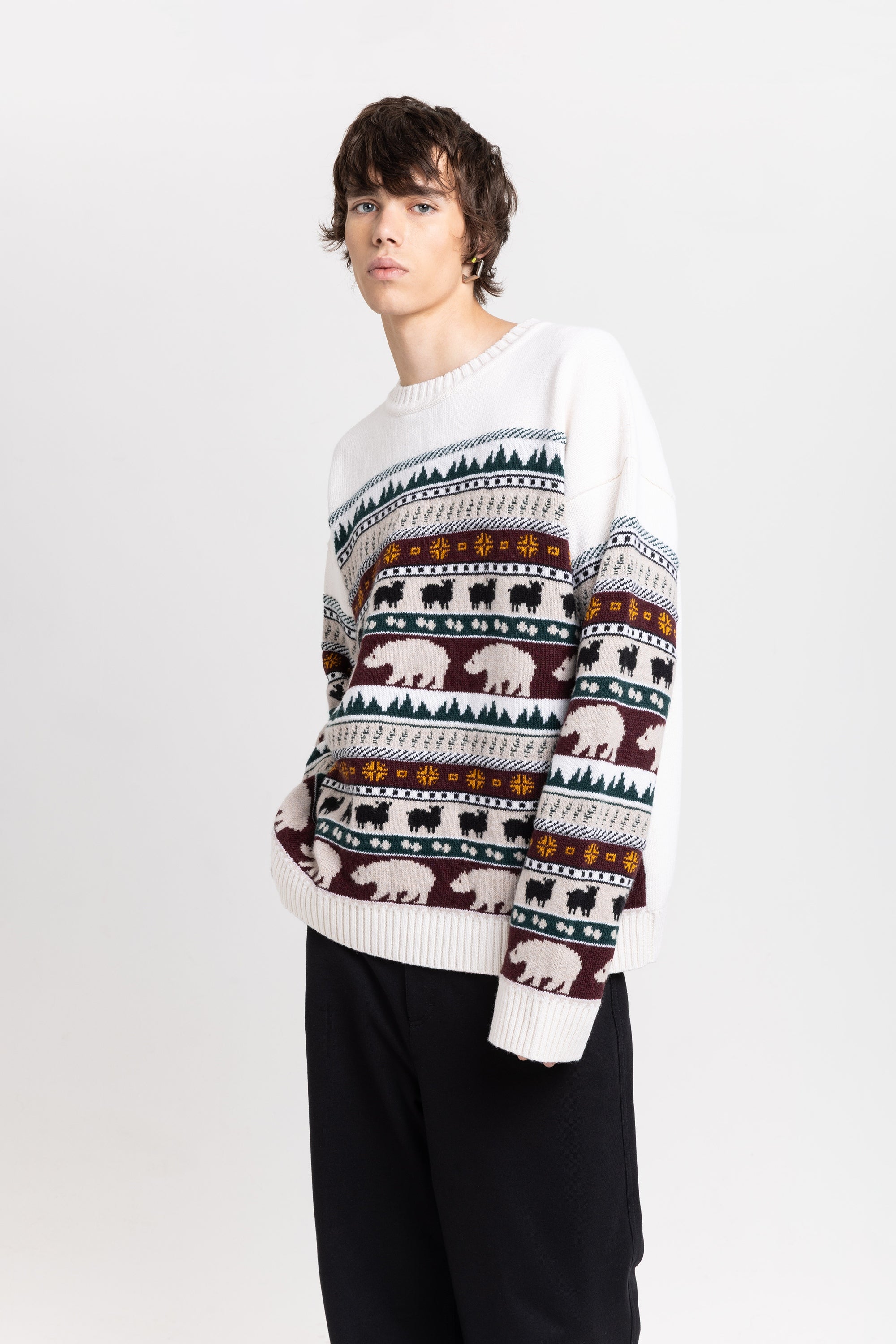 An elevated interpretation of a winter classic, this jacquard pullover is knitted from fine merino wool in a light seasonal palette. It features a relaxed unisex silhouette and intricate woven motifs inspired by the wilderness.