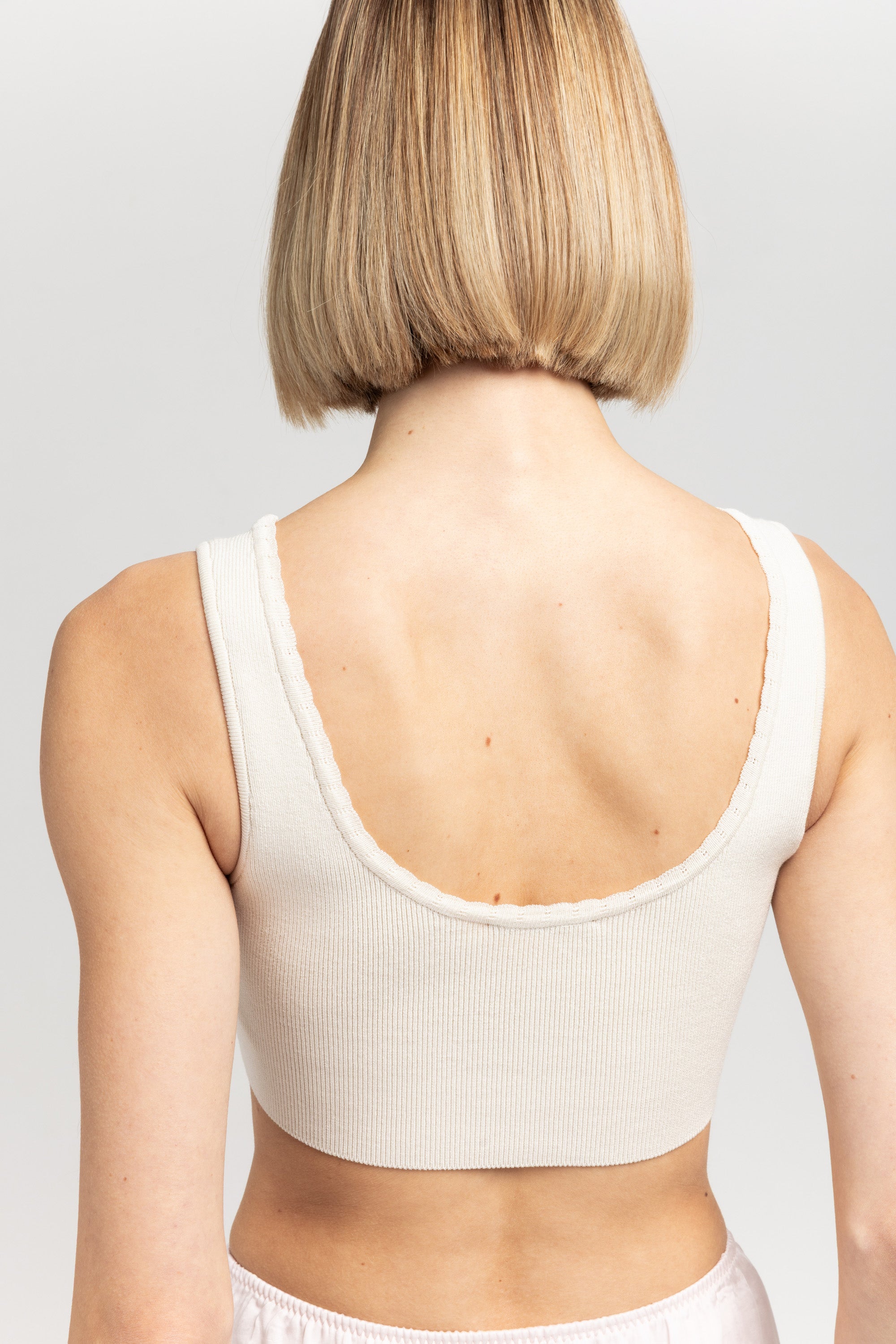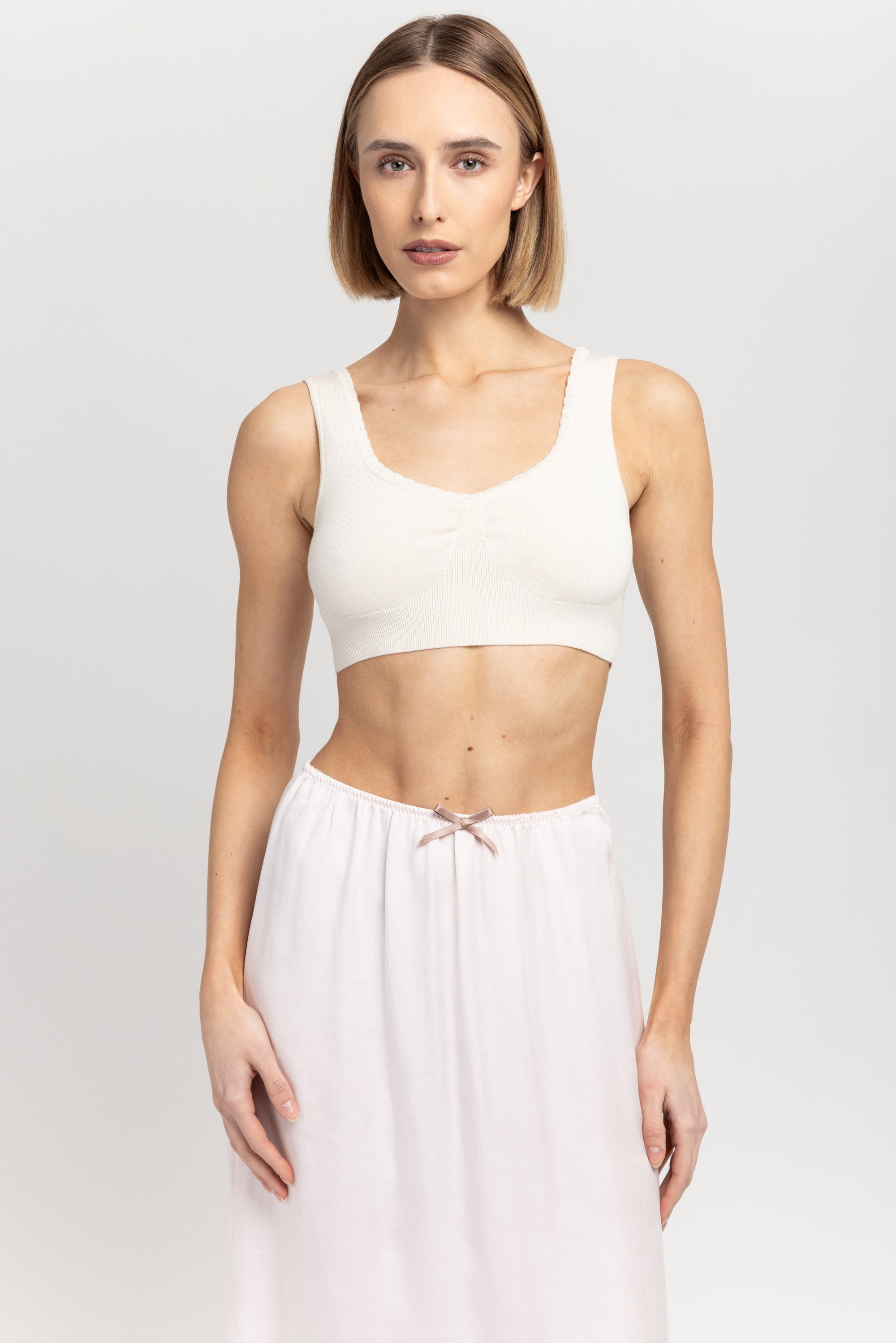 A versatile bralette in off white viscose cotton. The K4604 offers effortless styling as both foundation and layering piece.