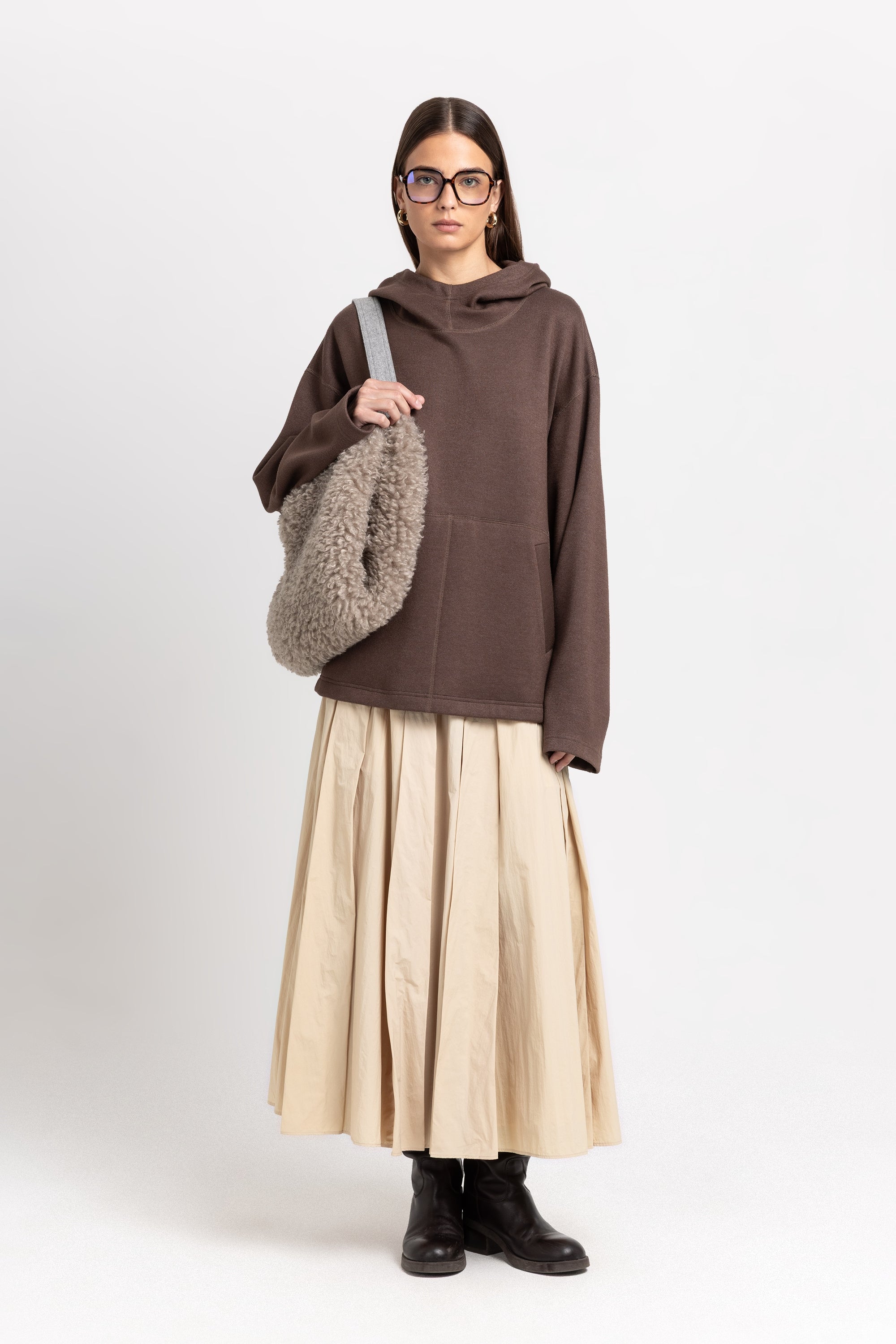 A tactile expression of winter ease. Crafted in plush faux alpaca fur, the ALBA taupe shoulder bag doubles as a cocooning hand muff - balancing function and indulgence. With a single compartment and thoughtful interior pocket, it offers a soft structure for the season’s colder days and a cozy companion on-the-go.