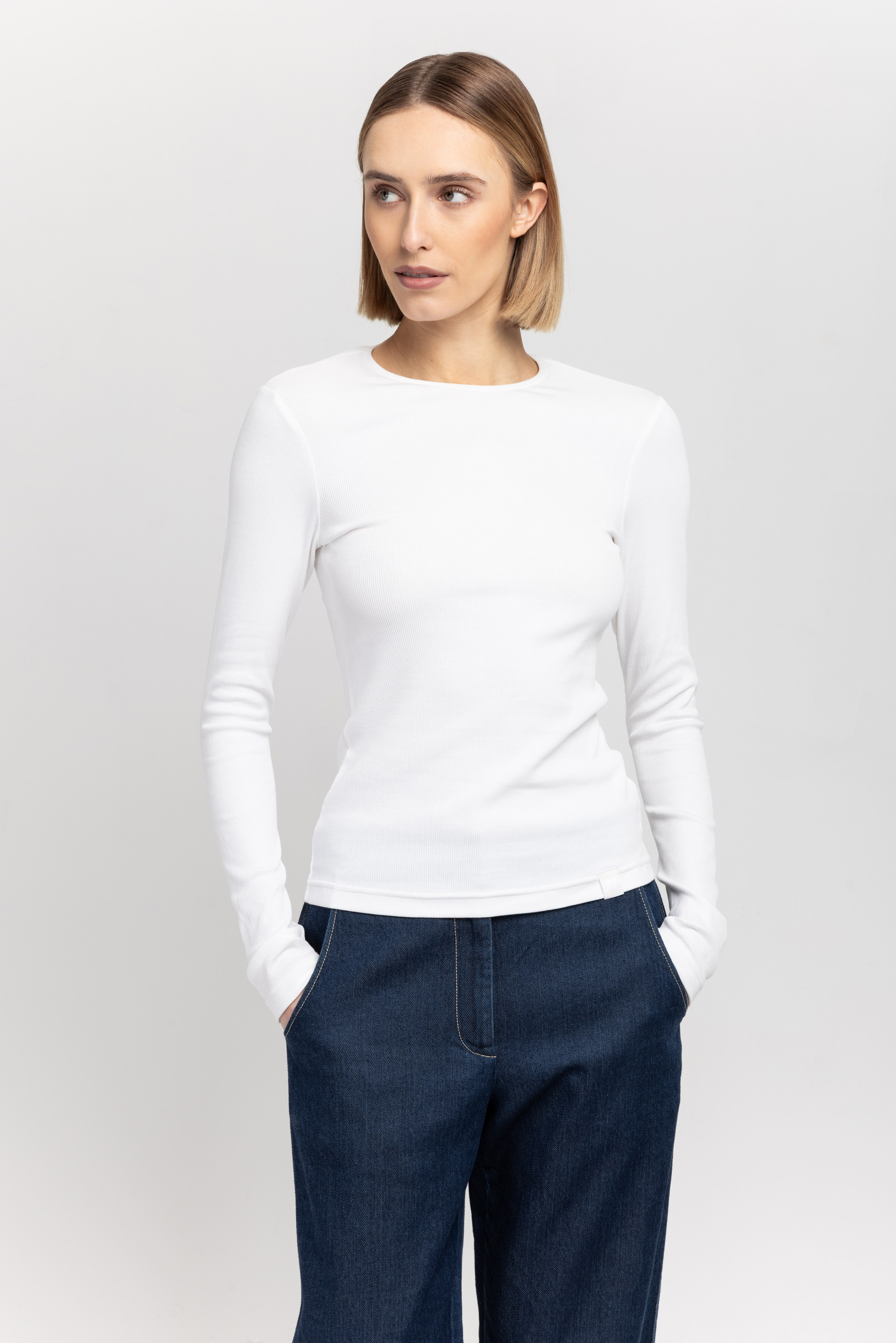 Off white organic cotton rib long sleeve t-shirt