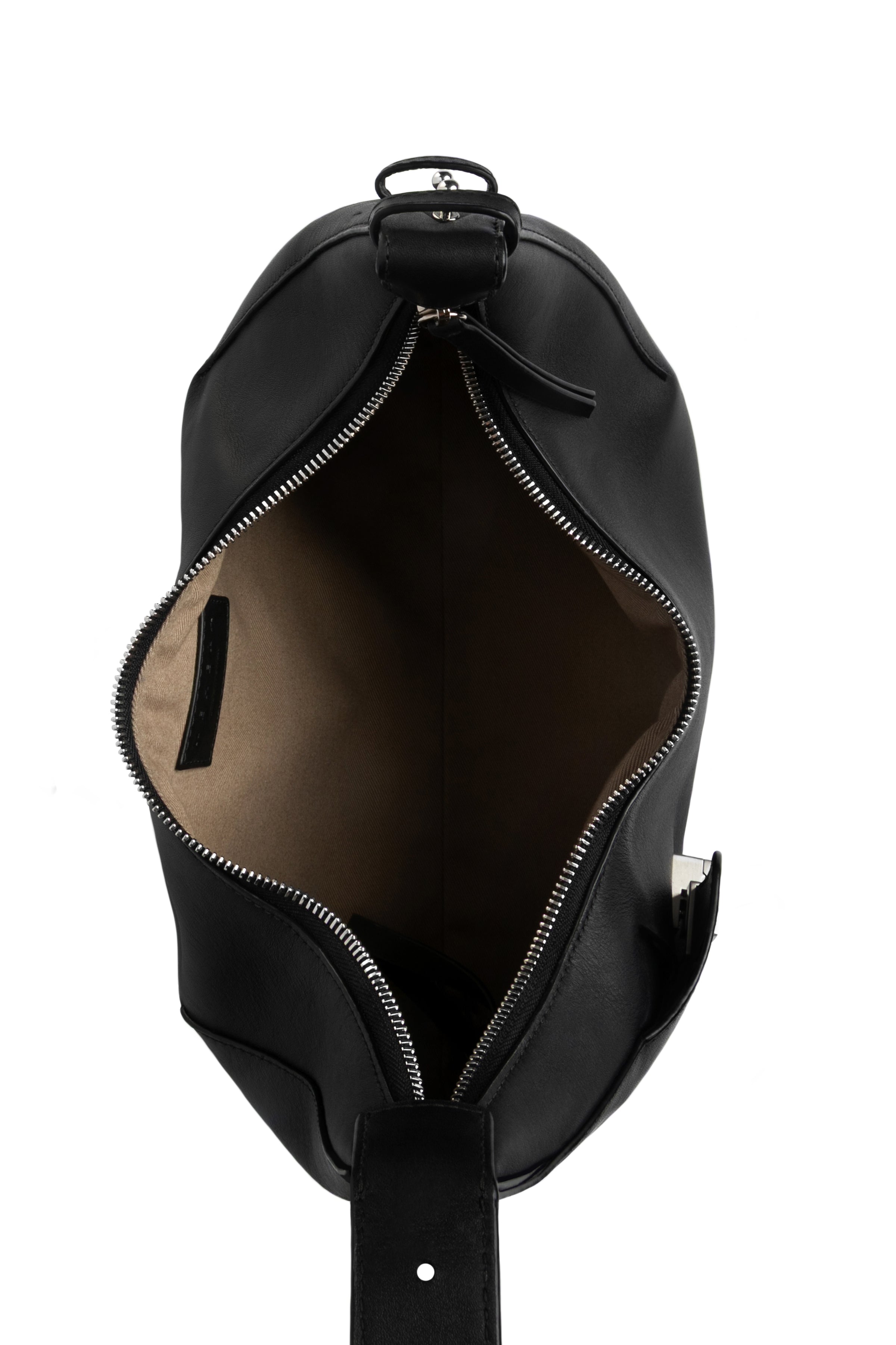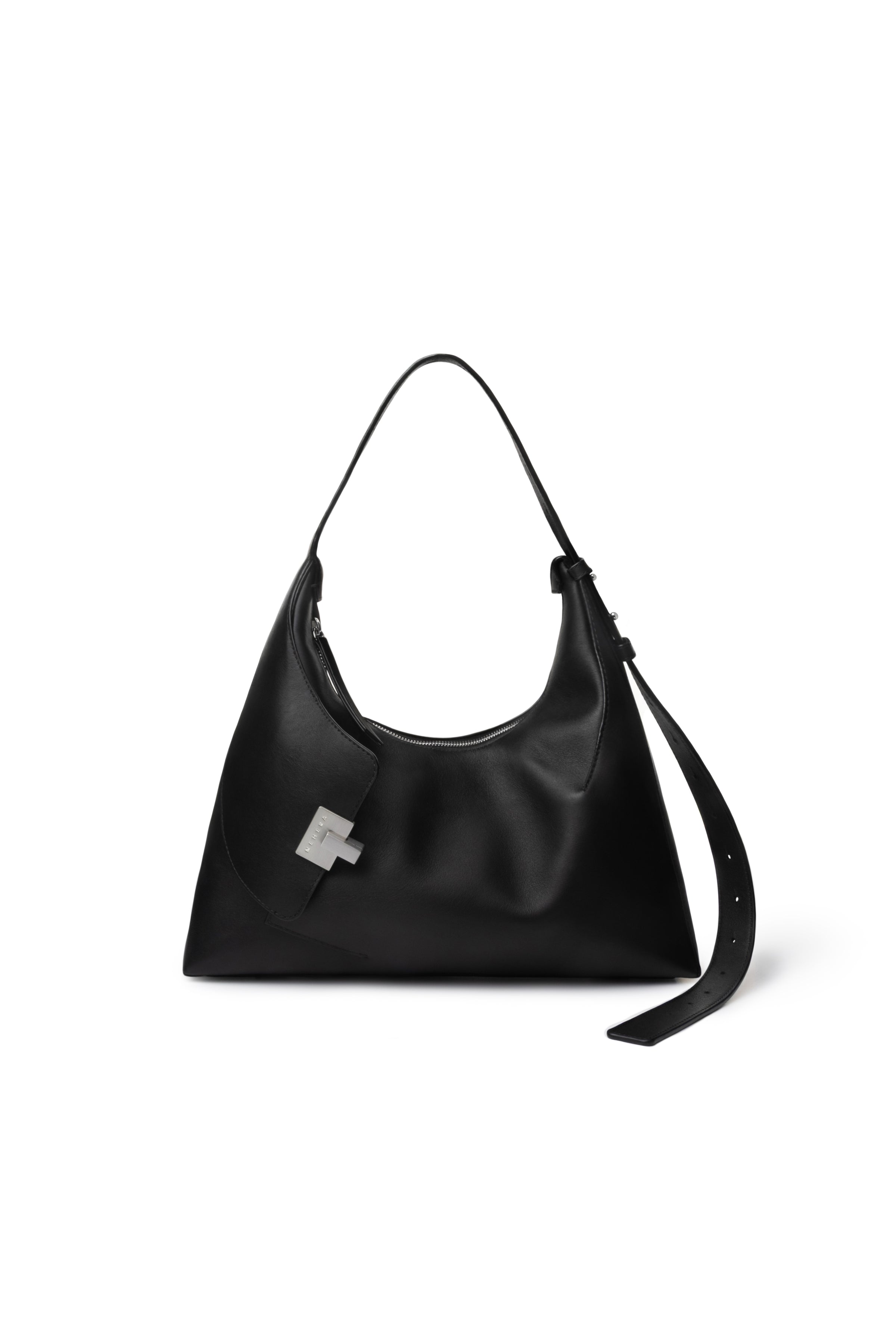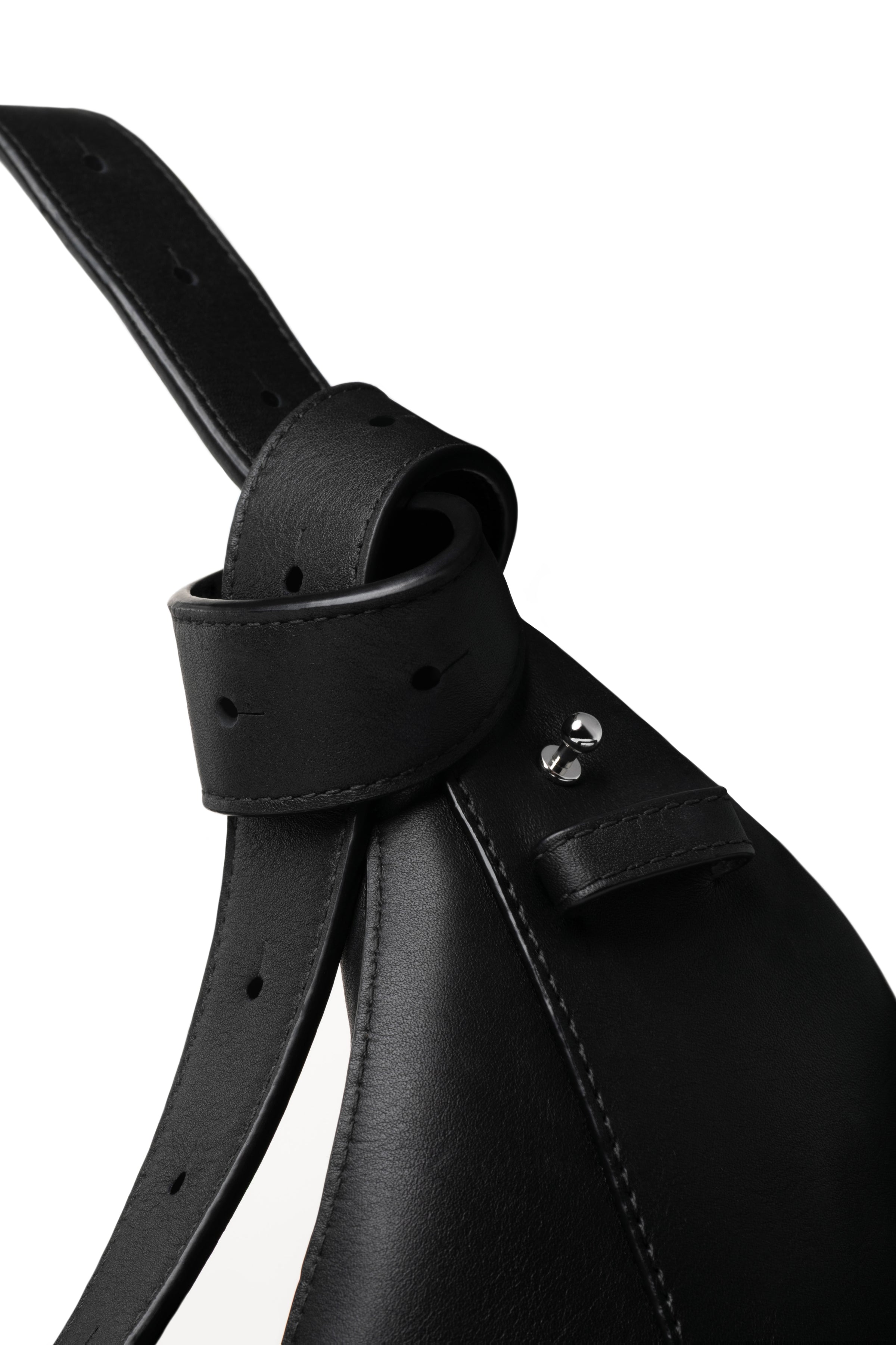 The Tilda Bag is a sculptural leather handbag defined by a distinctive knotted strap and refined detailing. It can be worn in three ways: as a shoulder bag, crossbody, or handheld. The design features a detachable zippered pouch and a front pocket with a metal closure lock.