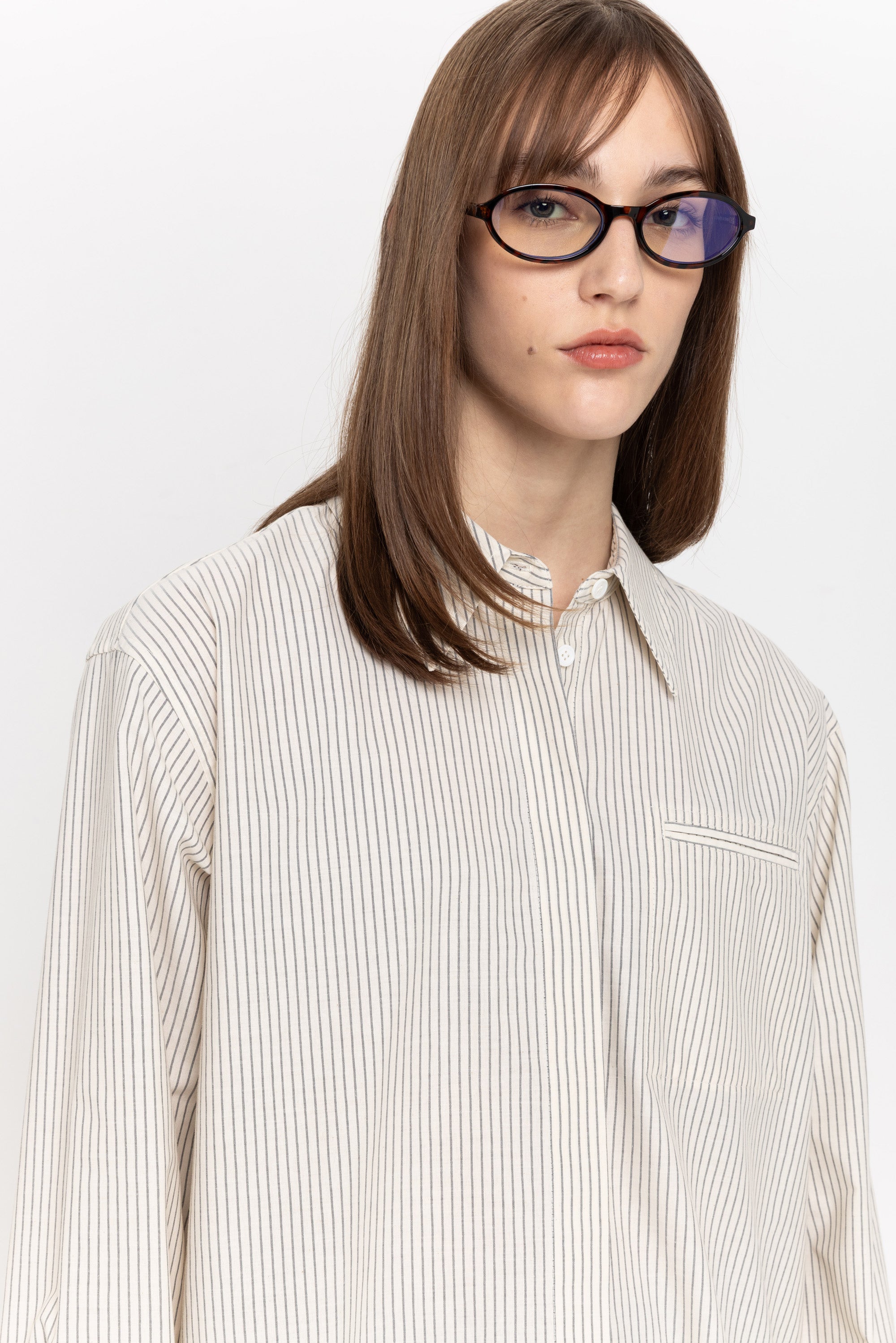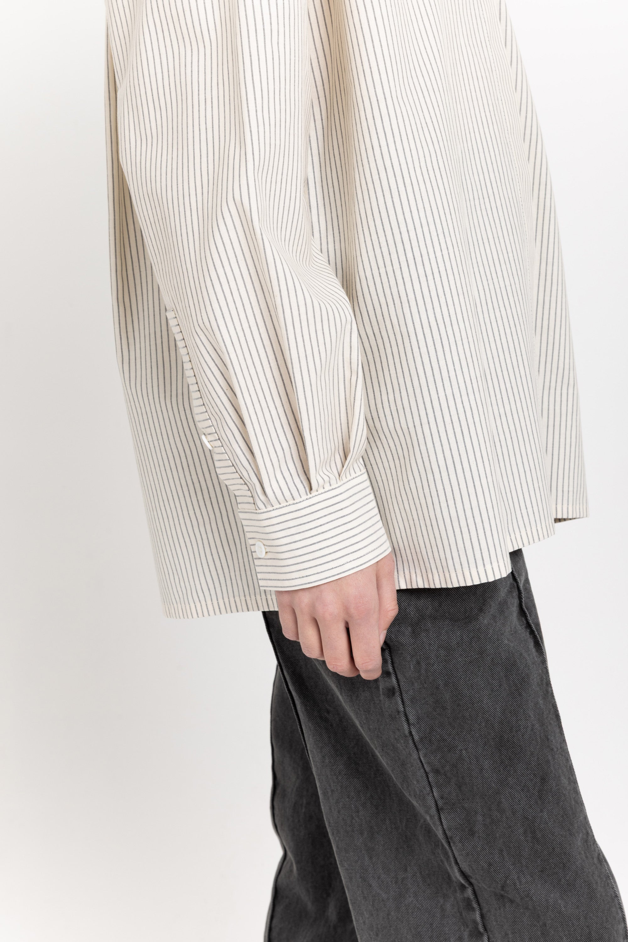 The BILLY 6 relaxed shirt in grey-beige wool twill. Designed with a single chest pocket and soft tailoring, it balances structure and ease - a timeless piece with understated sophistication.