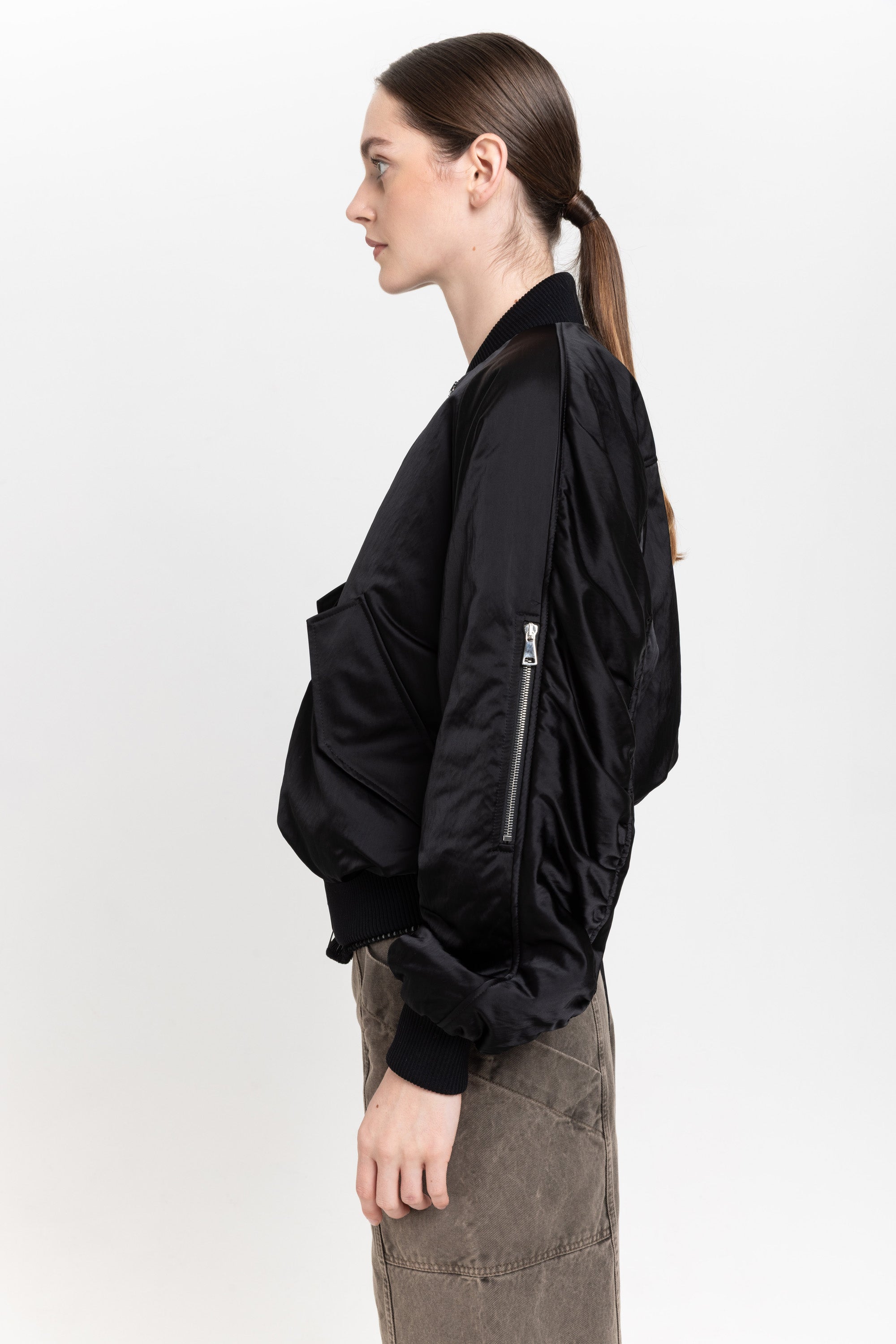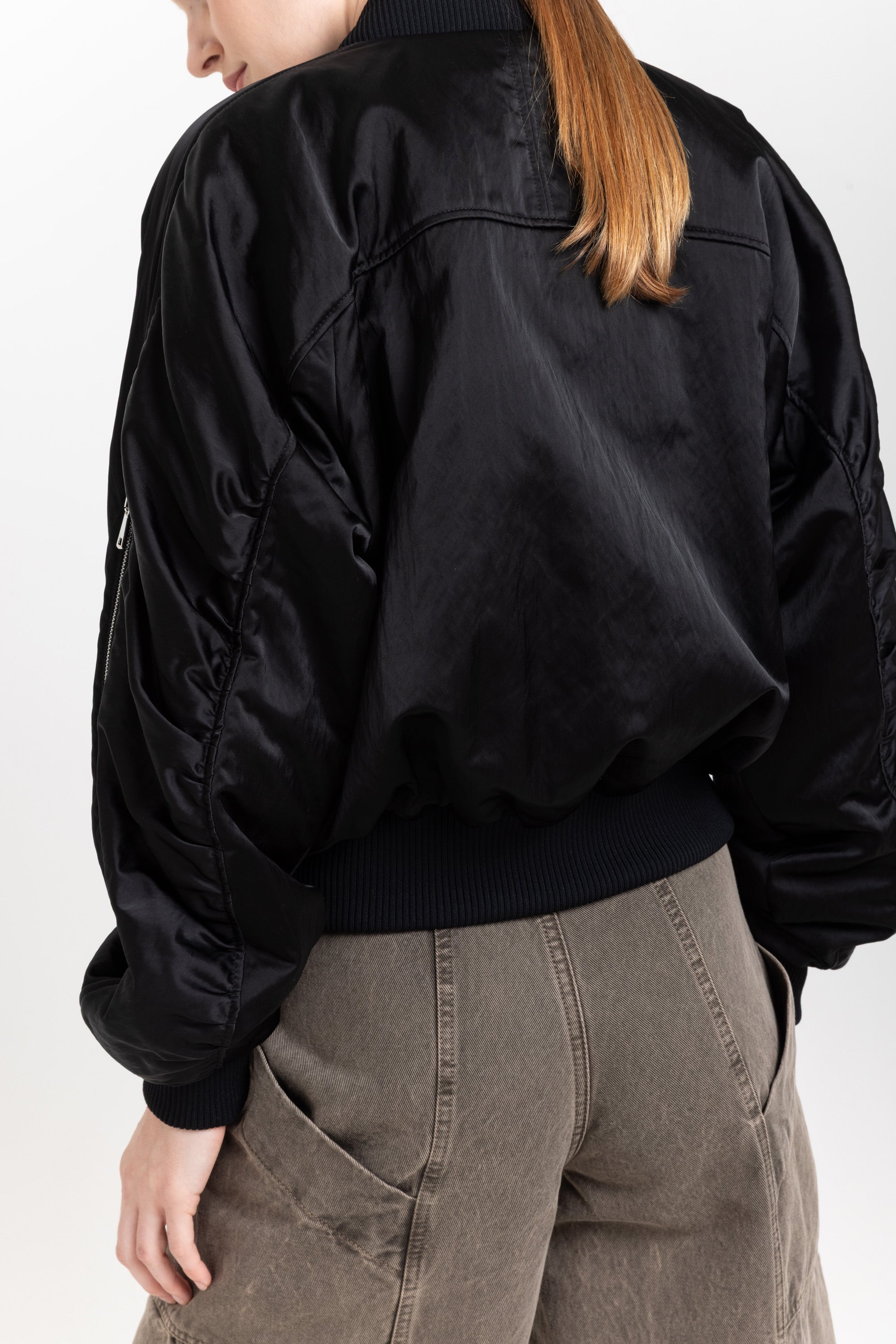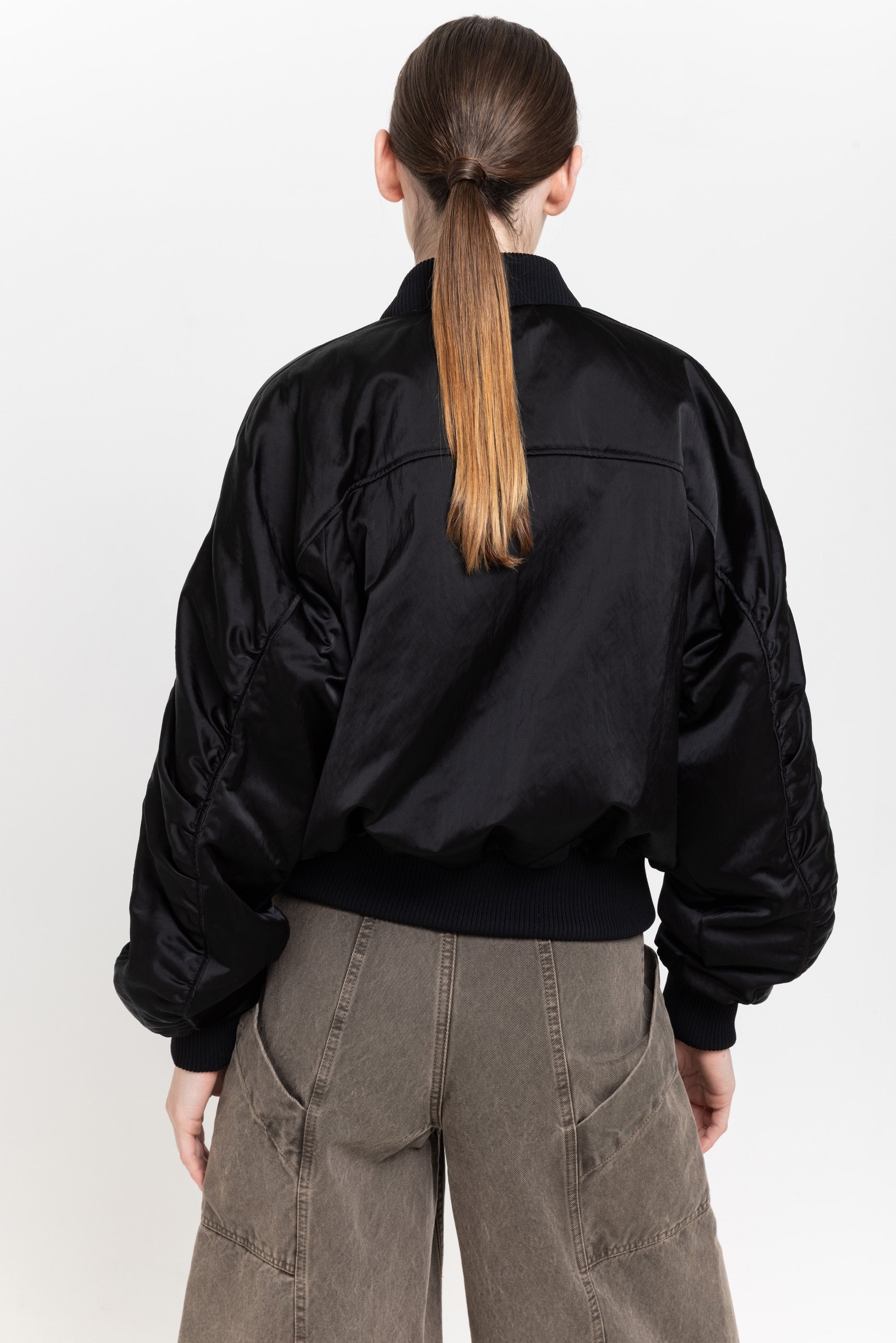 Black satin nylon bomber