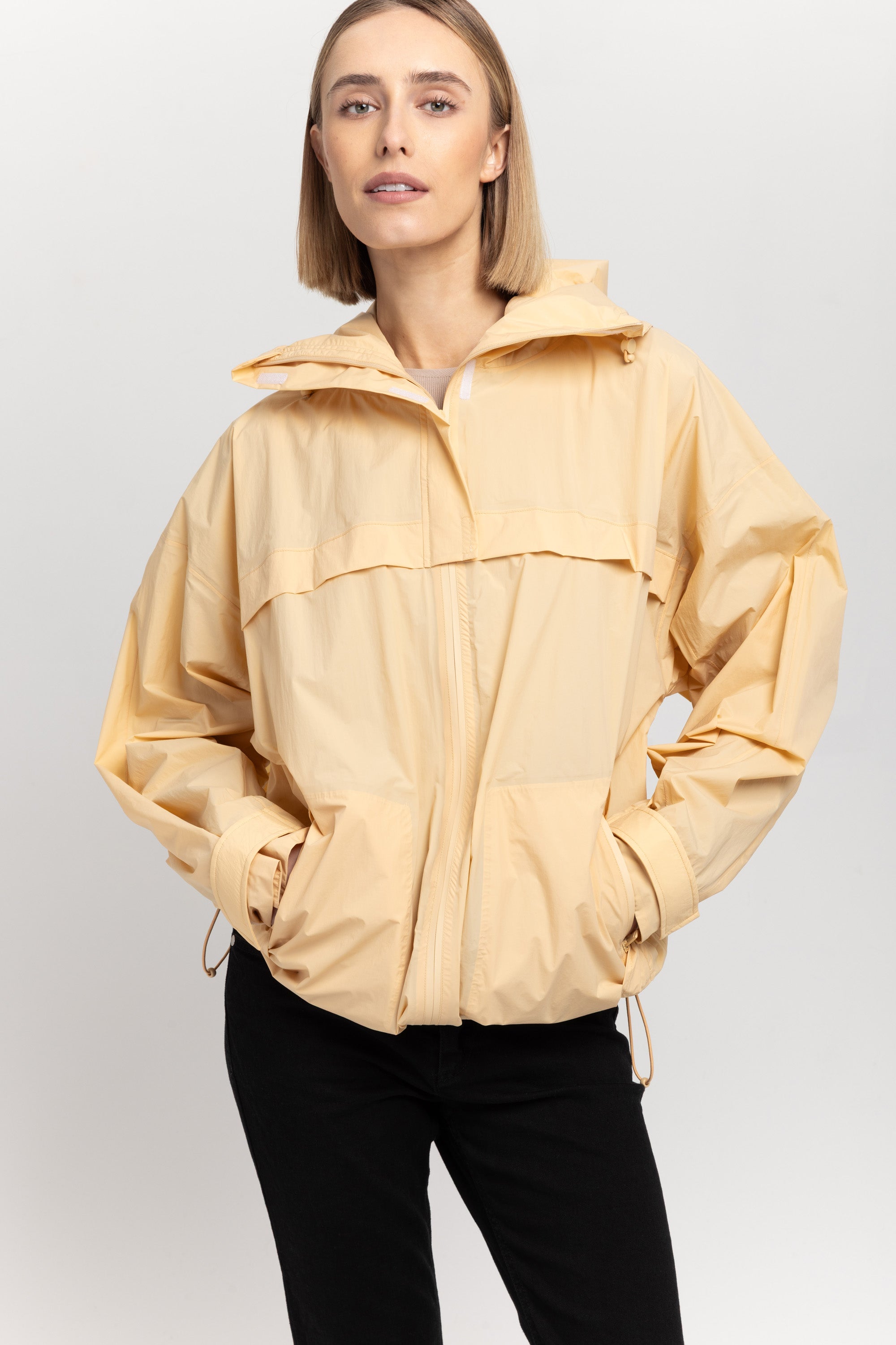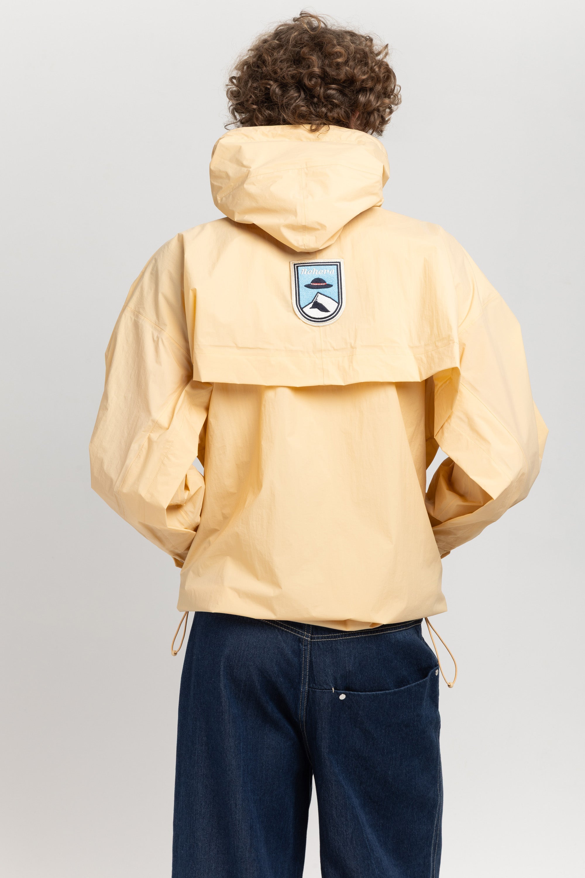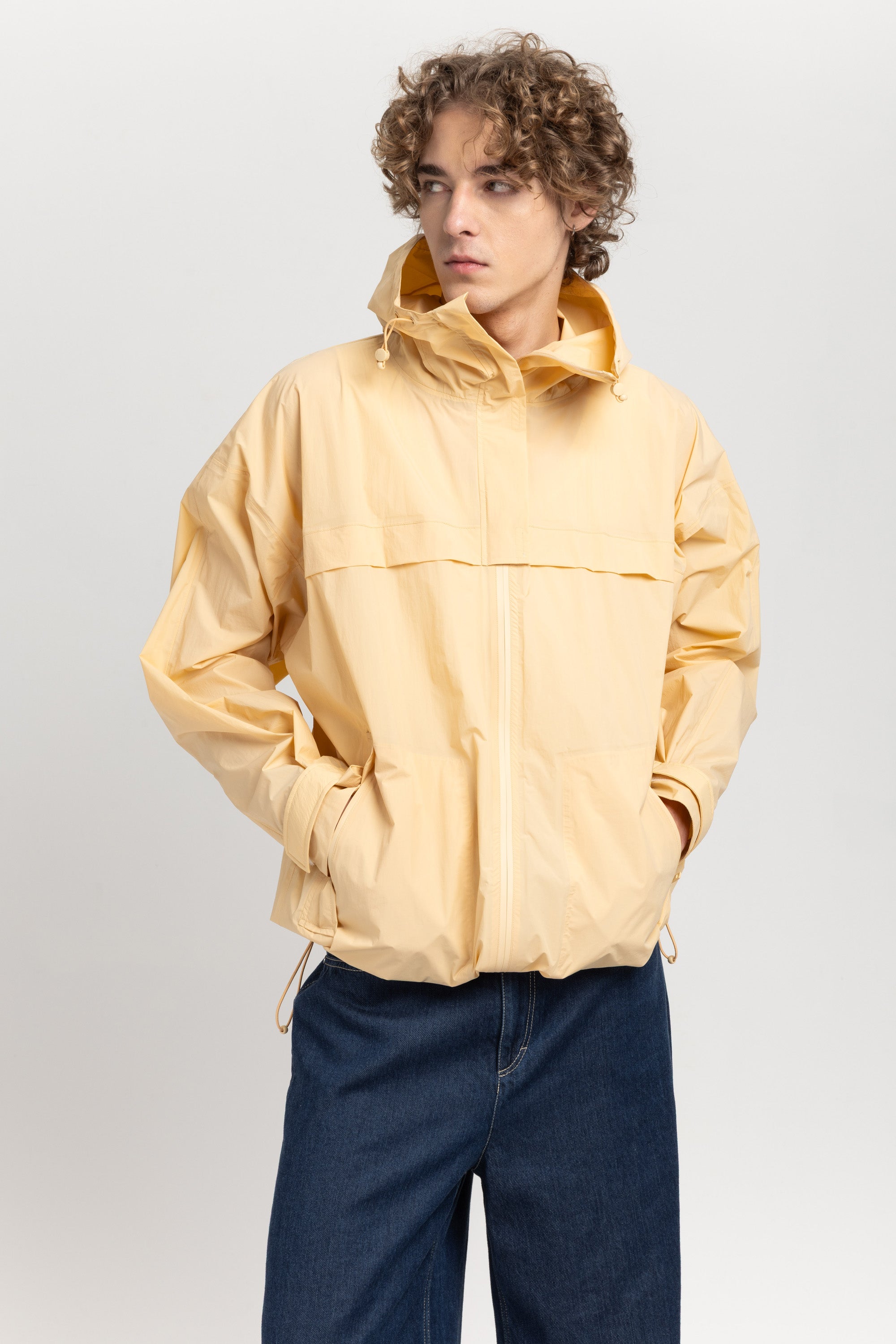 CERLA is a unisex butter beige anorak, fully waterproof with internal taped seams. Thoughtfully designed with a covered top zipper, sealed and adjustable cuffs and hem, and covered pockets. Durable, effortless, ready for rain.