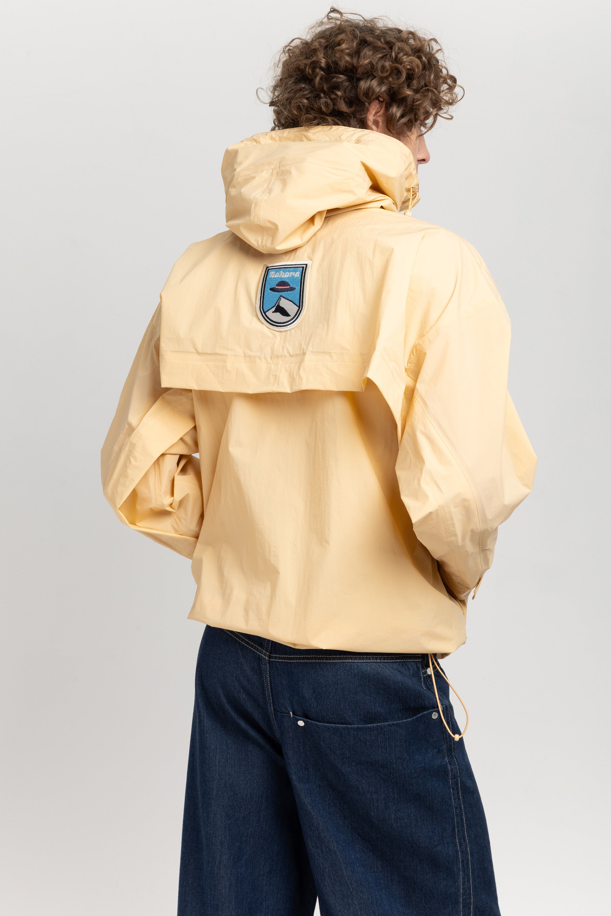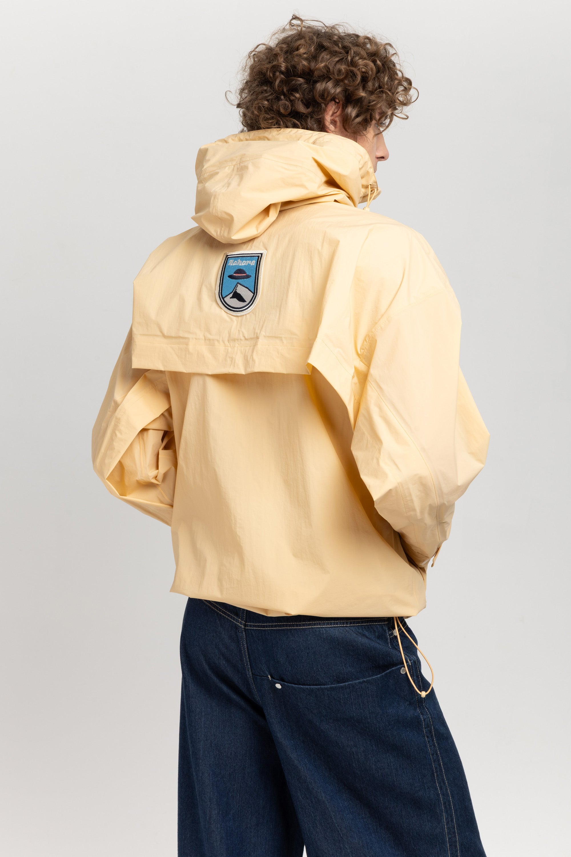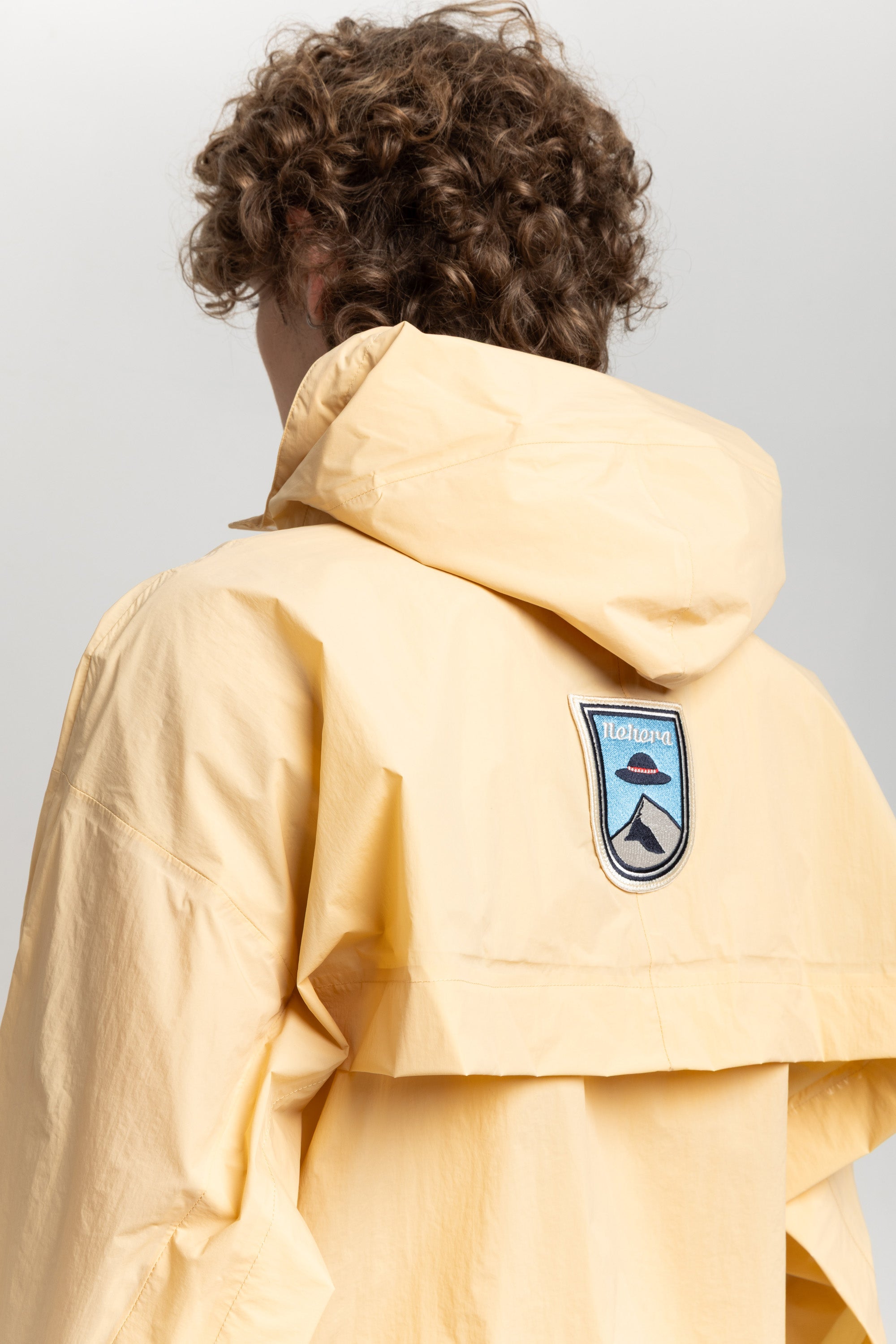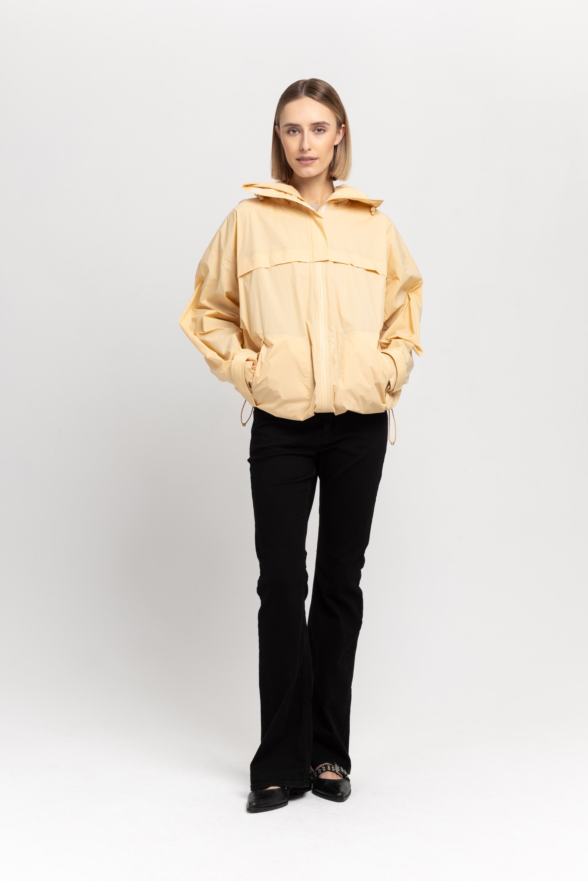CERLA is a unisex butter beige anorak, fully waterproof with internal taped seams. Thoughtfully designed with a covered top zipper, sealed and adjustable cuffs and hem, and covered pockets. Durable, effortless, ready for rain.
