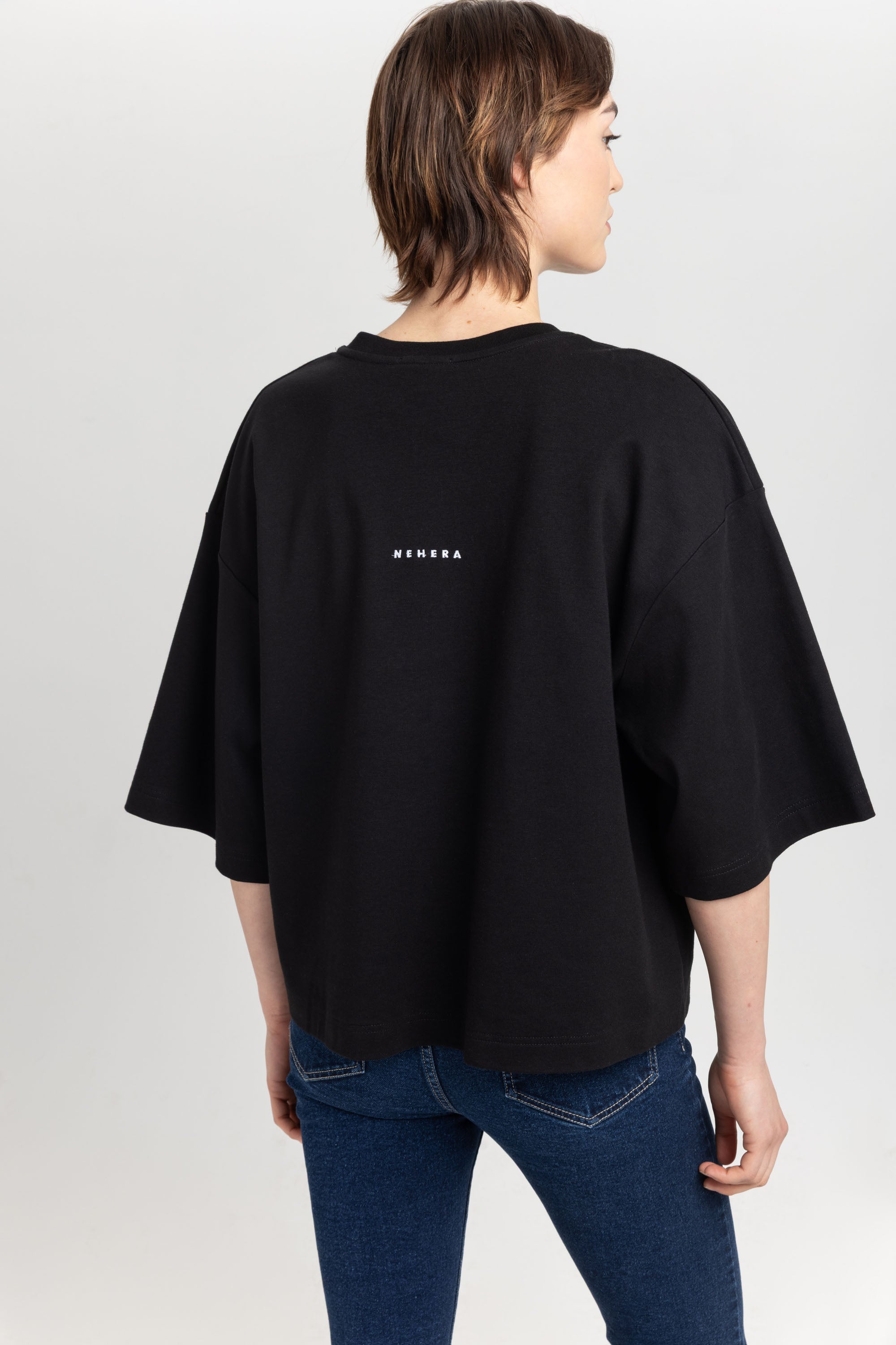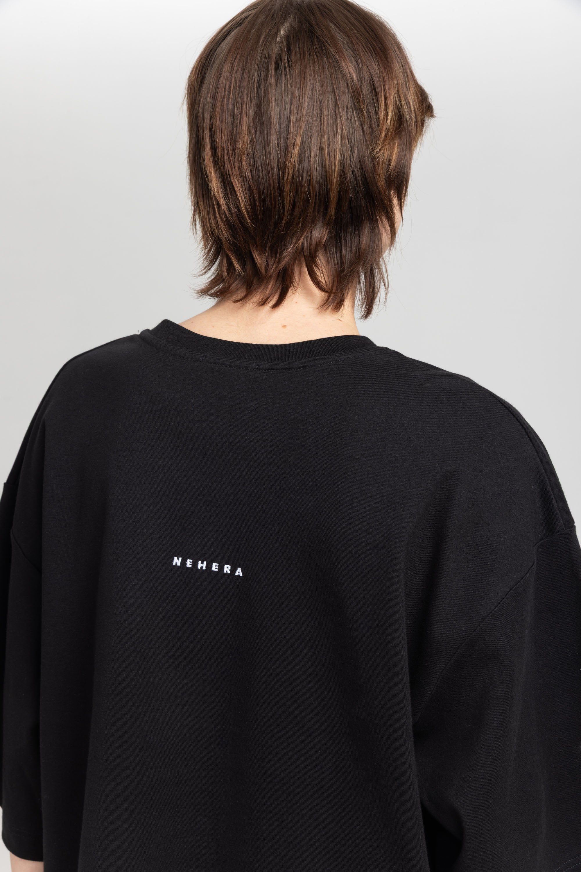 'WHITE LOGO' Black heavy cotton unisex oversized t-shirt