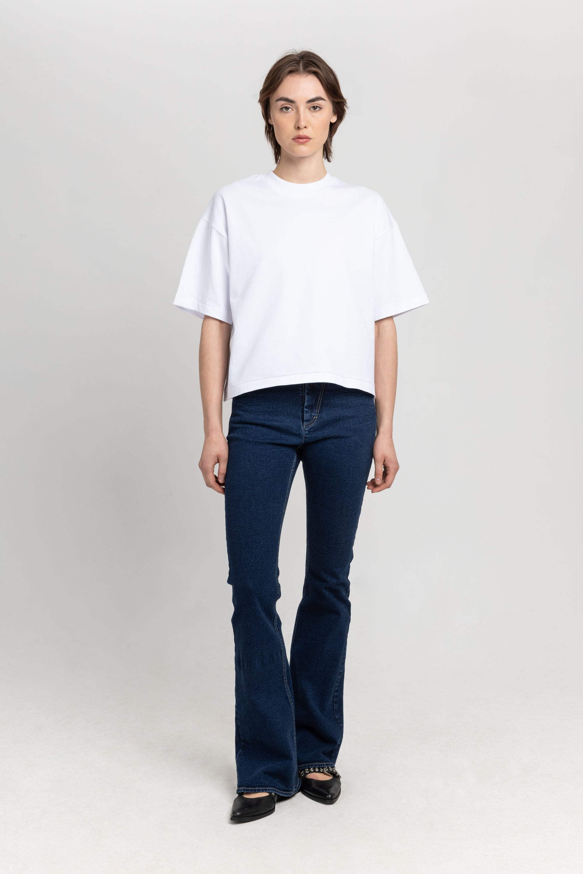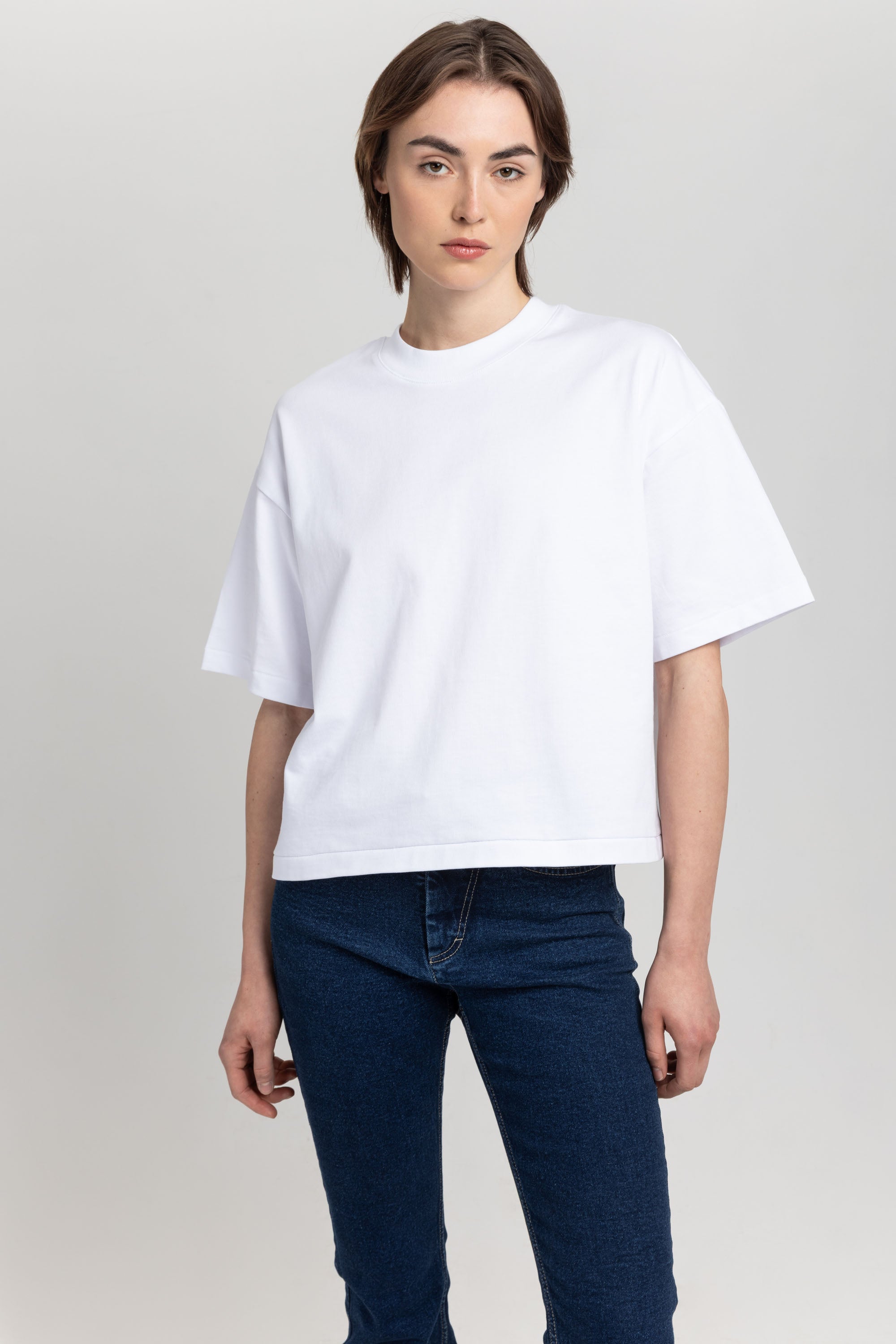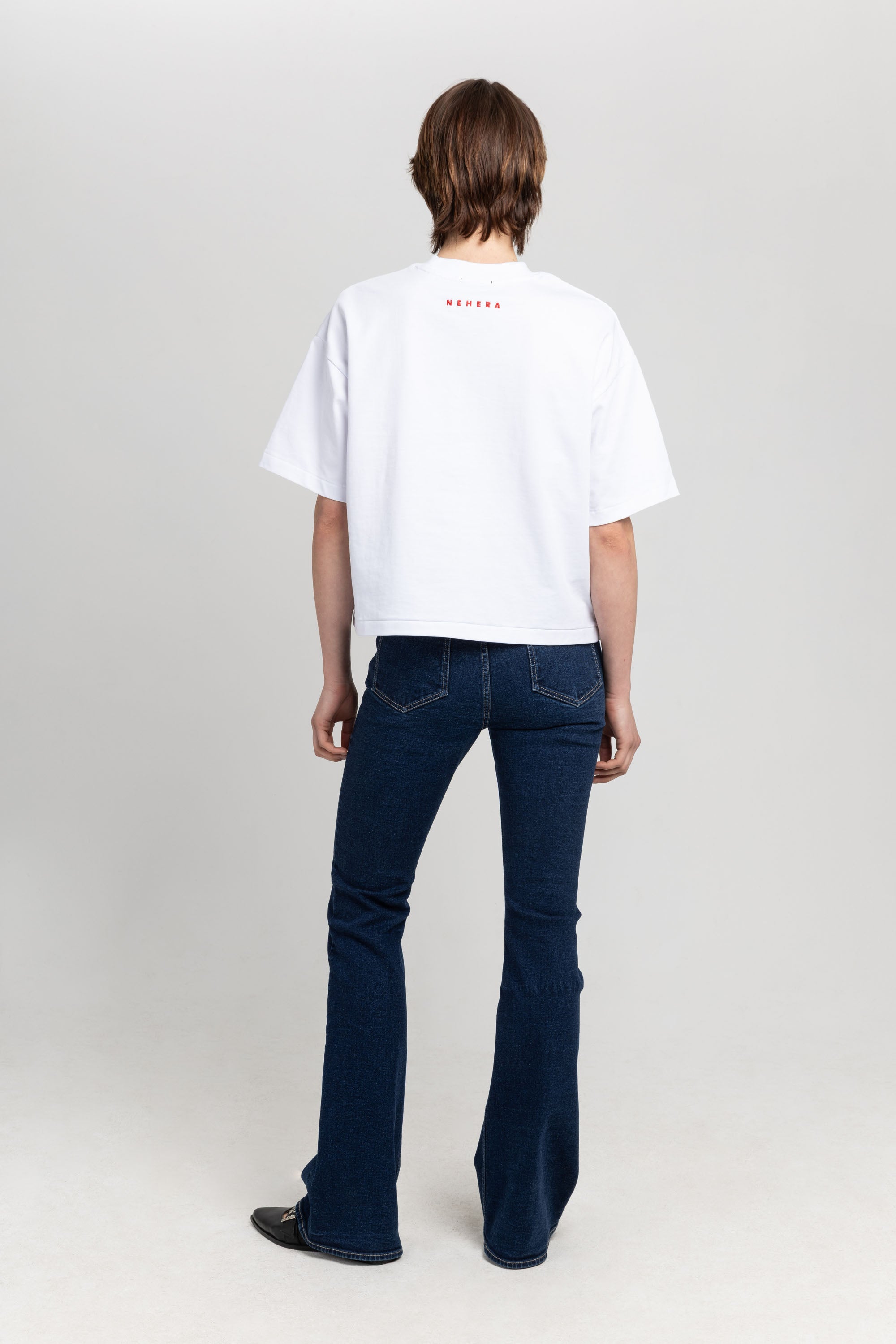The TOVER 1 t-shirt is crafted from heavy white cotton with a relaxed unisex drape. Finished with understated red logo embroidery at the back. Designed to slip easily over the TUNIS T-shirt, or to be worn solo for a refined everyday uniform.