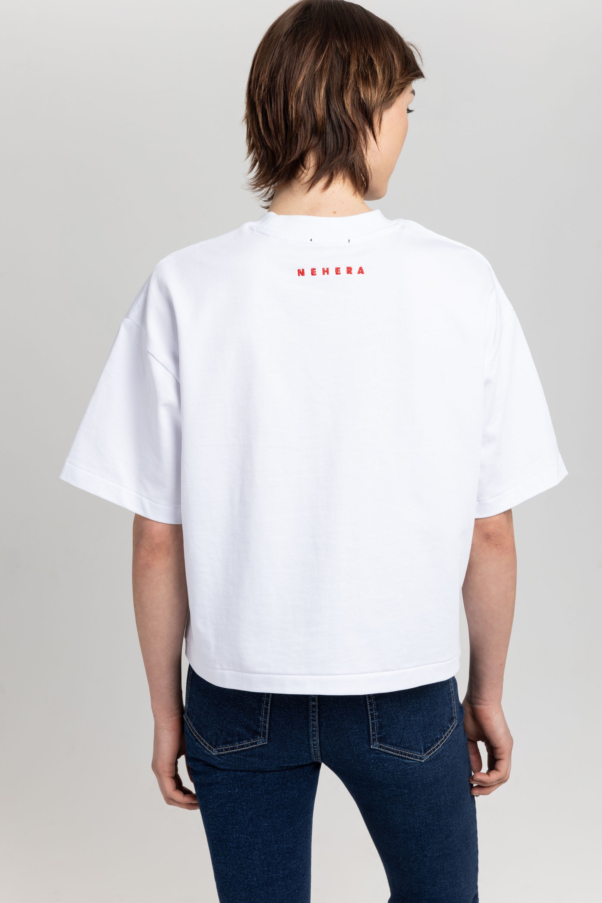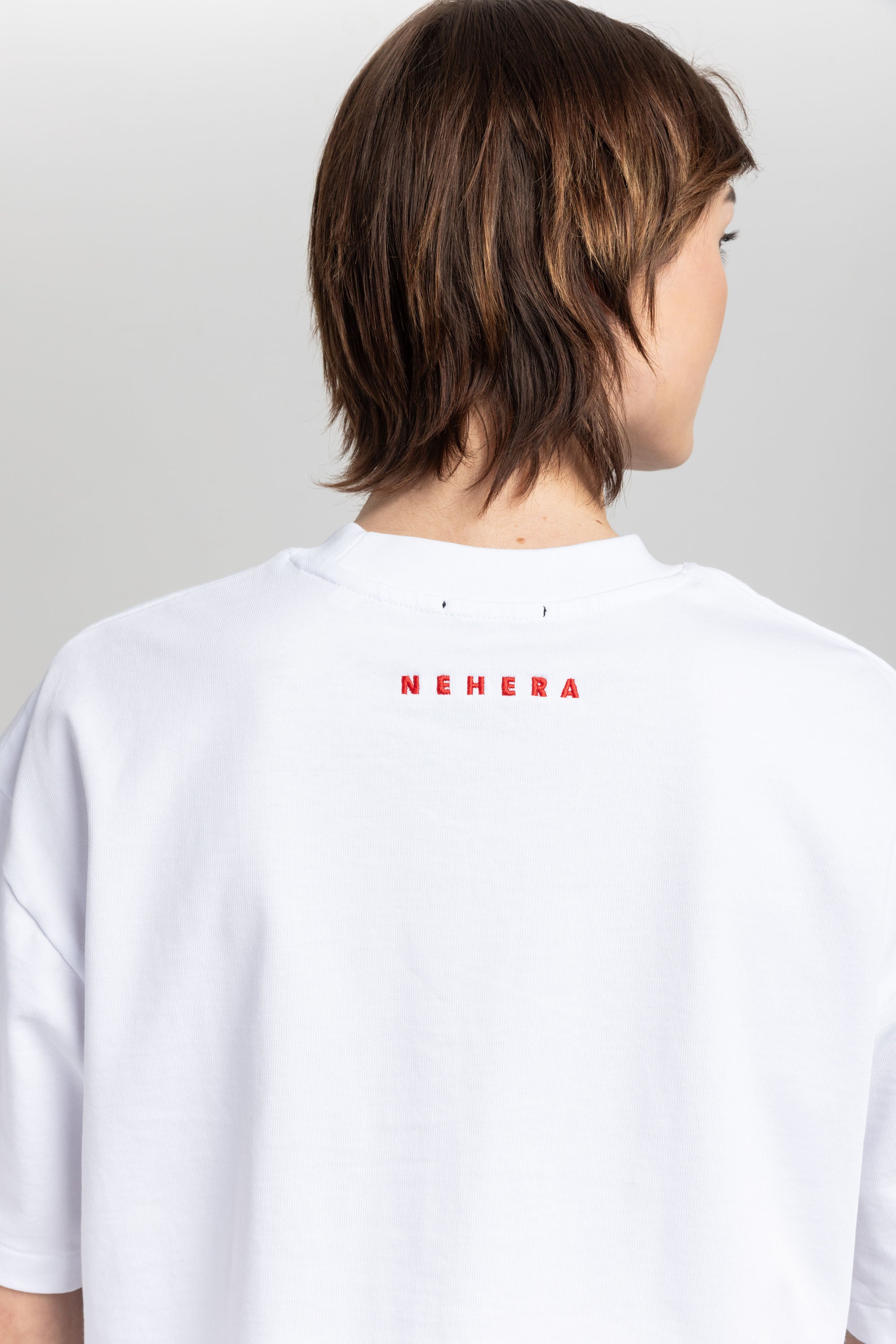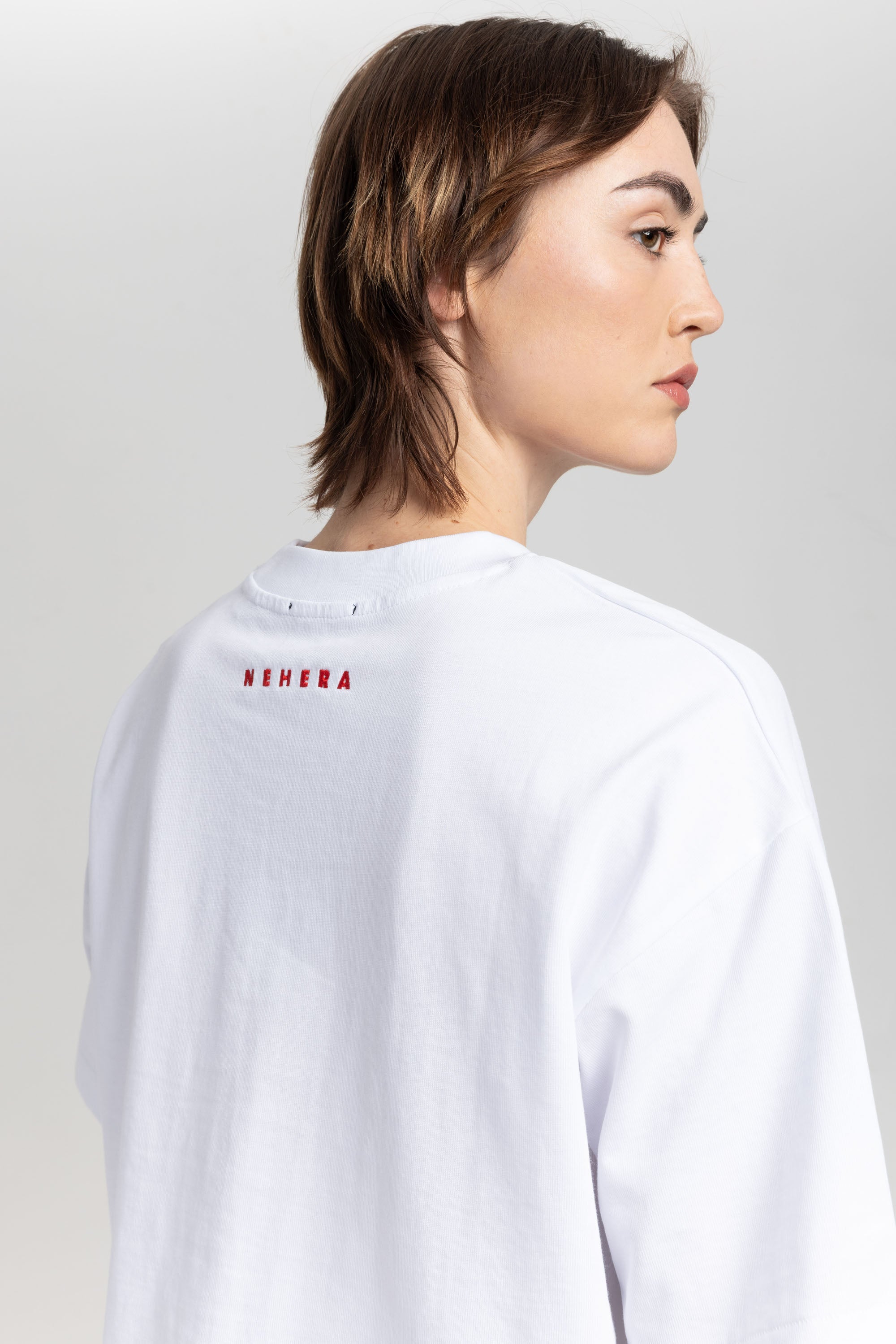 'RED LOGO' White heavy jersey unisex oversized t-shirt